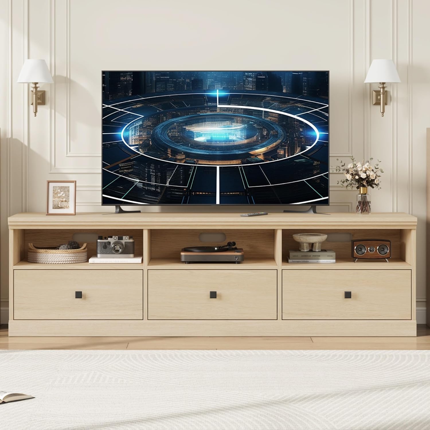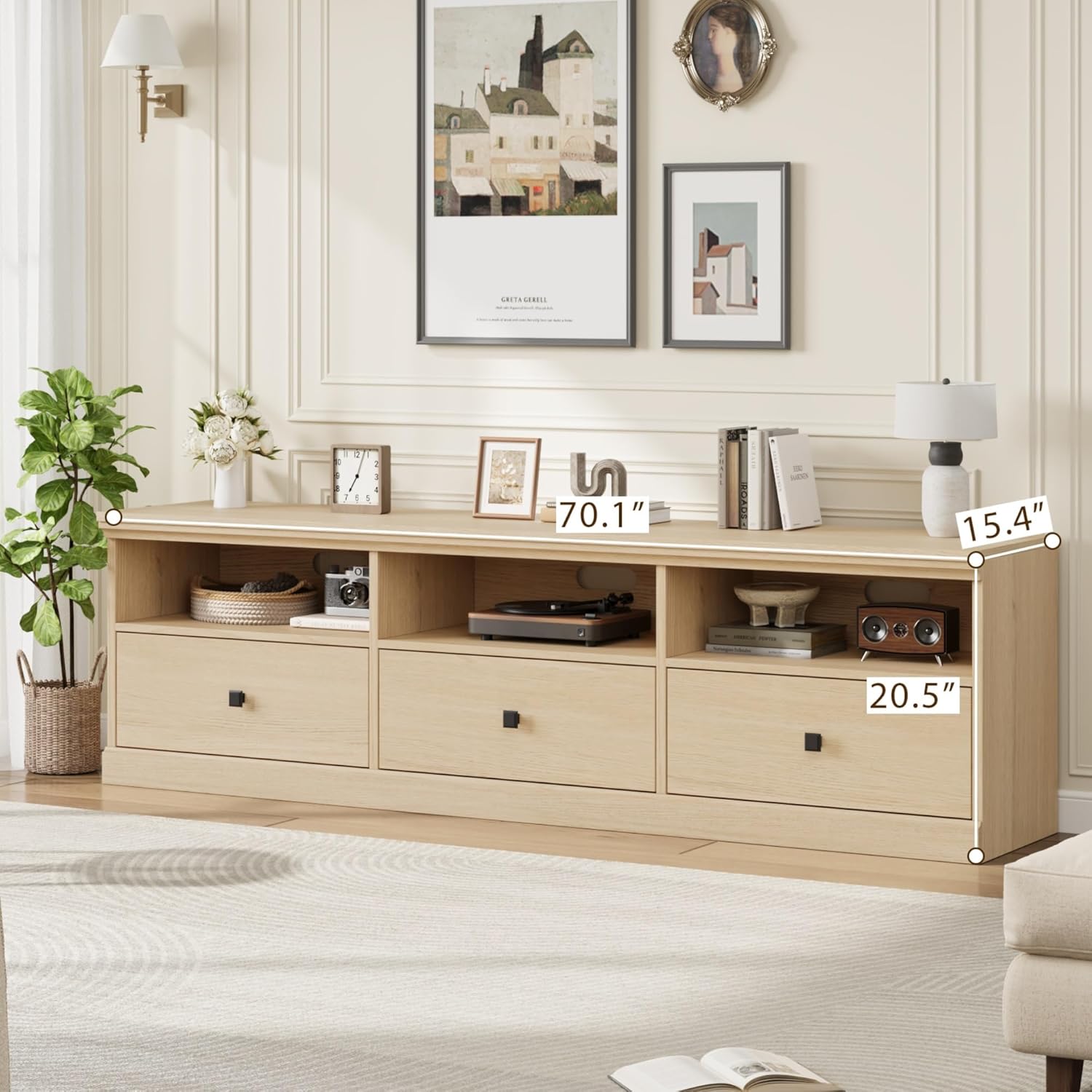 IDEALHOUSE 70in TV Stand for TVs up to 80", Mid Century Modern Entertainment Center with Storage Drawer and Open Shelves, TV Console Media Cabinet for Living Room, Bedroom (Light Oak)