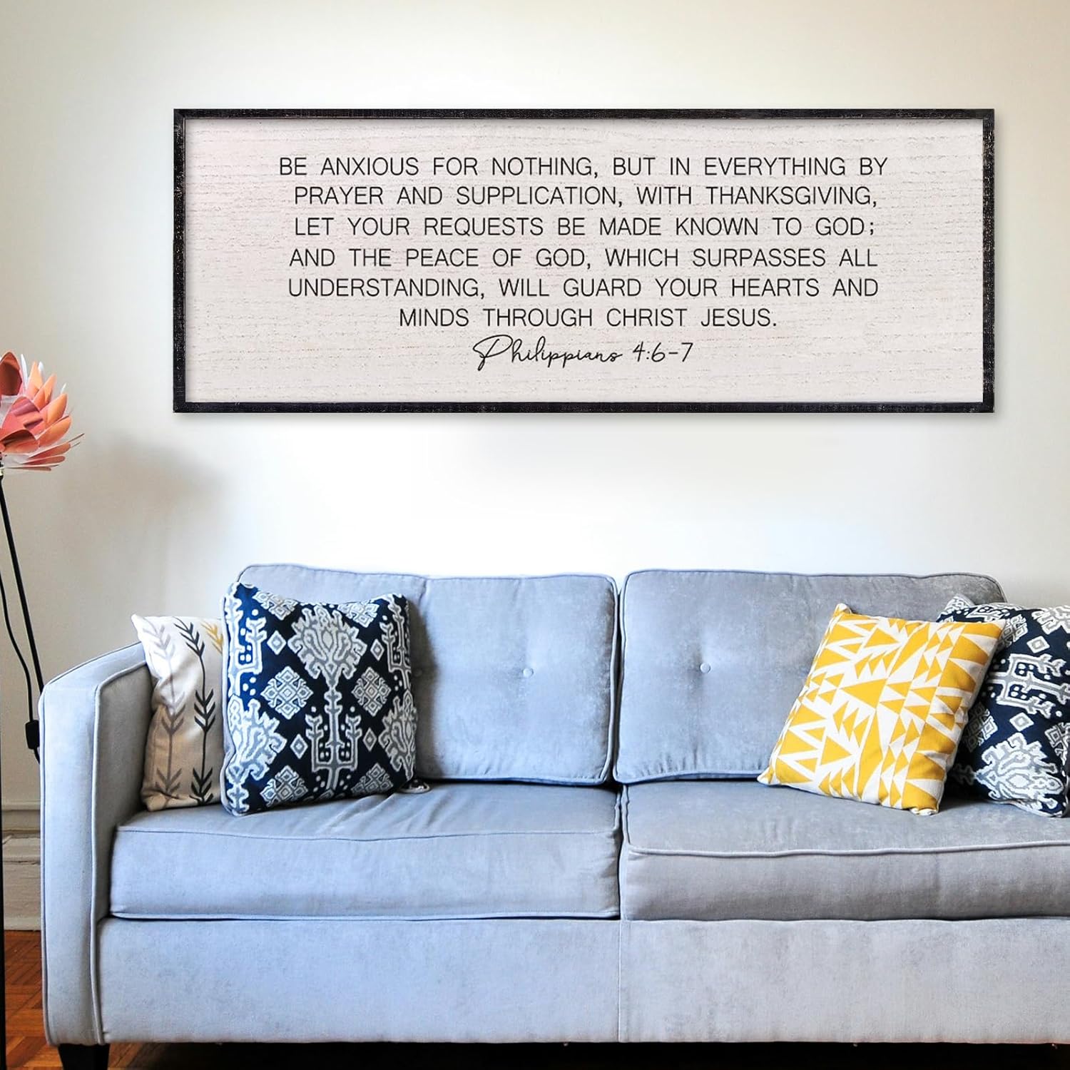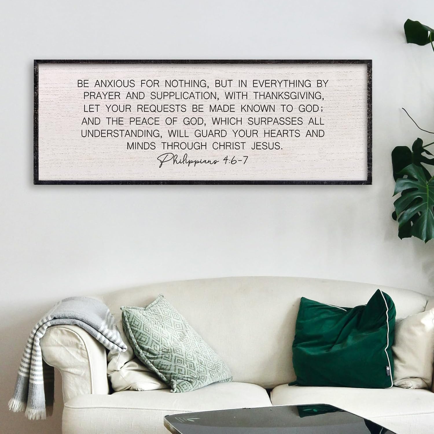 LuZhiQiang Be Anxious for Nothing Wall Decor 40"×15" Philippians 4:6-7 Bible Verse Sign Large Christian Scripture Wood Framed Hanging Decor (Black)