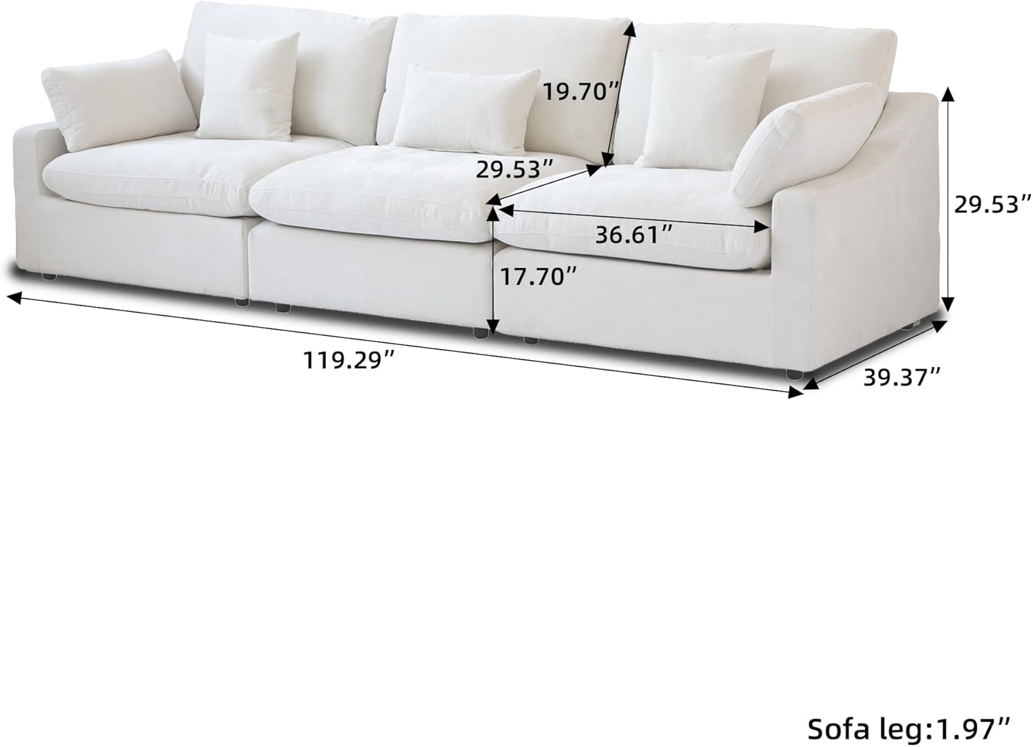 - β [Size Information] Overall Size: 119.29"L x 77.95"W x 29.53"H. The cushion cover, backrest cover, and frame cover of the sofa can all be removeable and washable. You can easily keep the sofa clean.