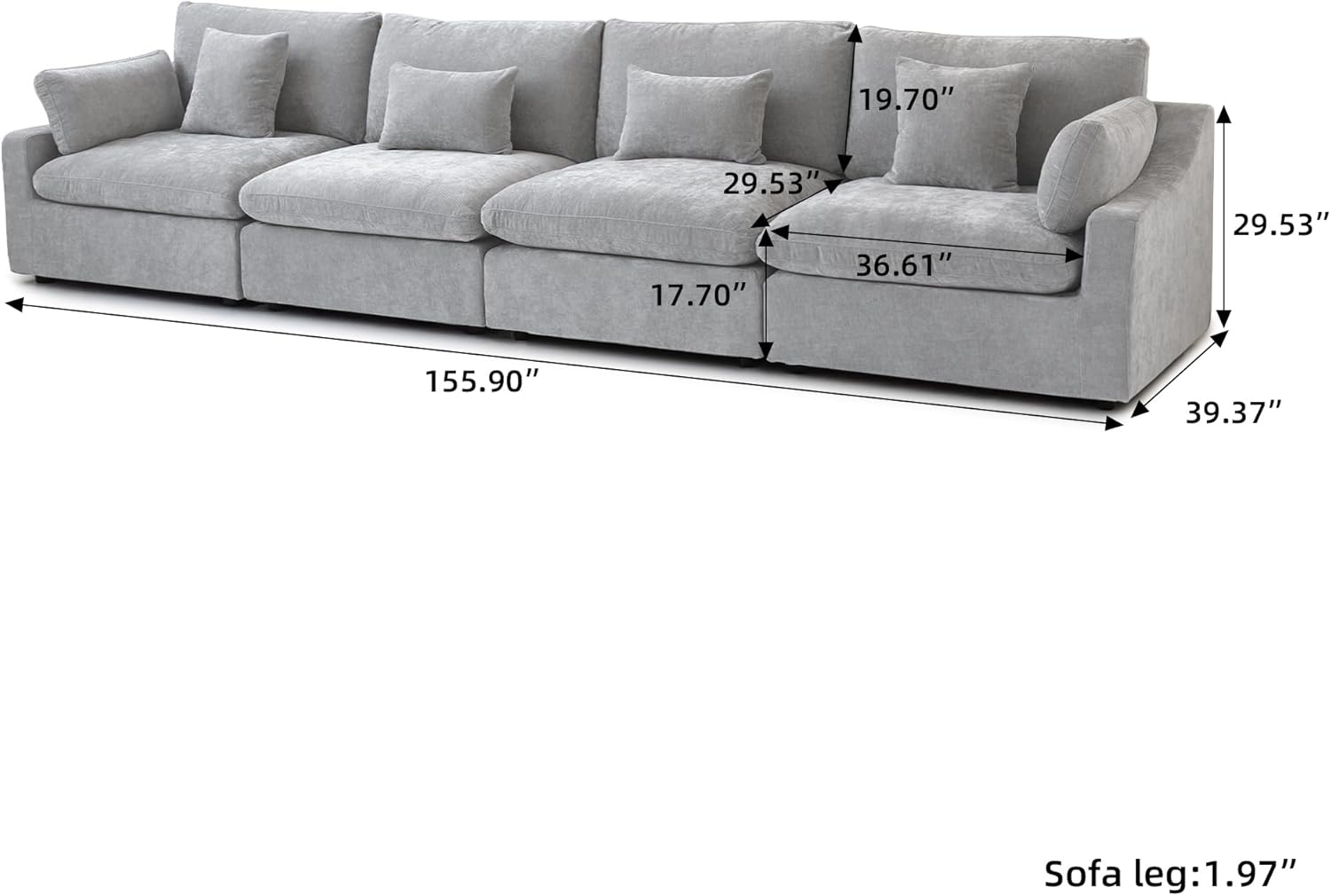 - β [Size Information] Overall Size: 155.9"L x 39.37"W x 29.53"H. The cushion cover, backrest cover, and frame cover of the sofa can all be removeable and washable. You can easily keep the sofa clean.