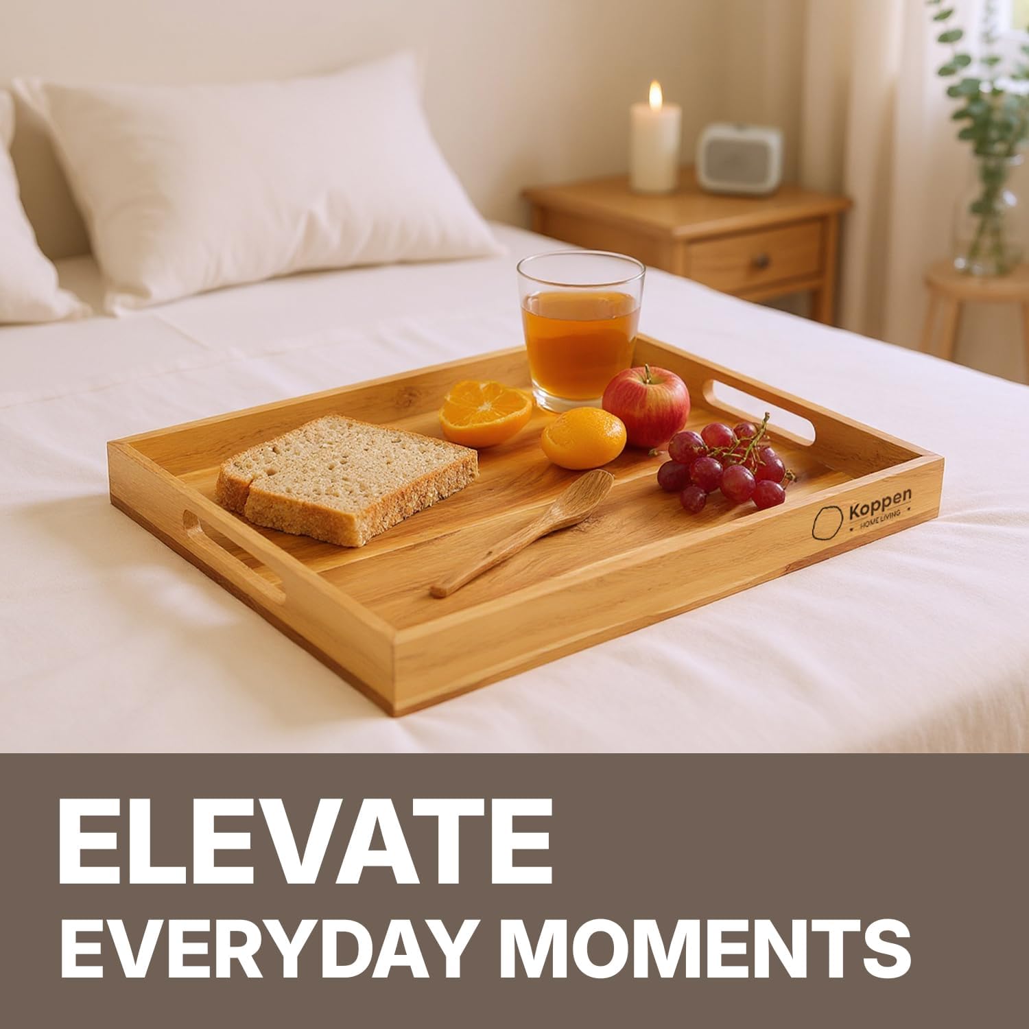 - [METICULOUSLY REFINED]: Our wooden serving tray is hand-finished through over 10,000 micro-sanding strokes—leaving the surface irresistibly soft, almost mental-like to the touch. Perfect as a wooden decorative tray, rectangle tray, or coffee tray for tray decor, it elevates food trays for eating, bed food trays for adults, serving platters and trays for parties, or party serving trays and platters.
