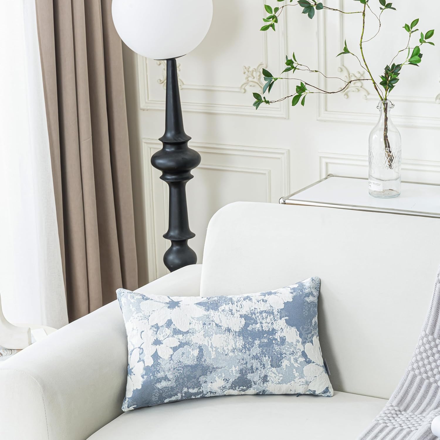 Jacquard Throw Pillow Covers 12x20 Inch Set of 2 - Vintage Floral Boho Pillow Cases with Botanical Pattern | Farmhouse Decor for Couch Living Room | Soft Textured Neutral Trio Dusty Blue 12" x 20"