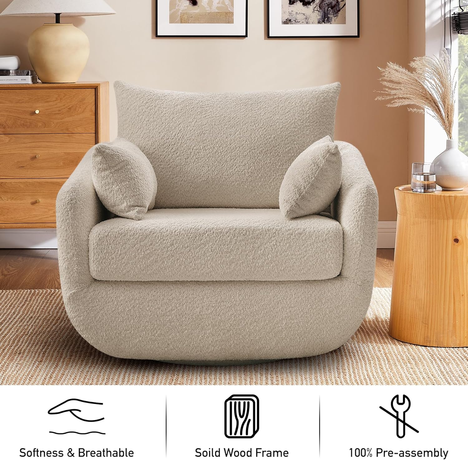 - Durable Construction & Floor-Friendly Design---Built to last with a 360° solid wood swivel base (supports 330 lbs) and reinforced steel frame,No wobbling, squeaking, or sudden drops,just silent, stable rotation perfect for conversations,With its swivel base, the chair can rotate fully,maximizing space utilization in smaller rooms.The wood he base is wrapped with black anti-dirty gaske also protects hardwood floors from scratches.