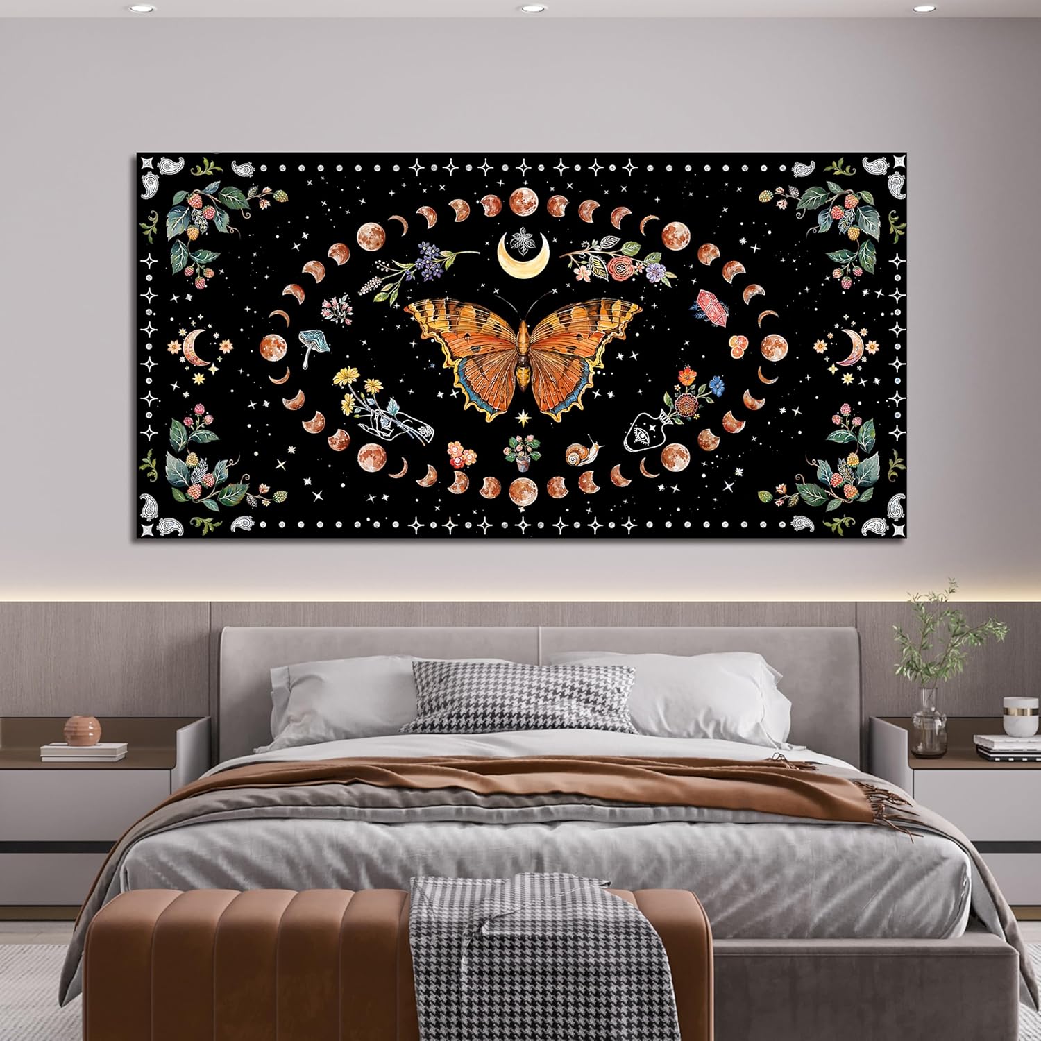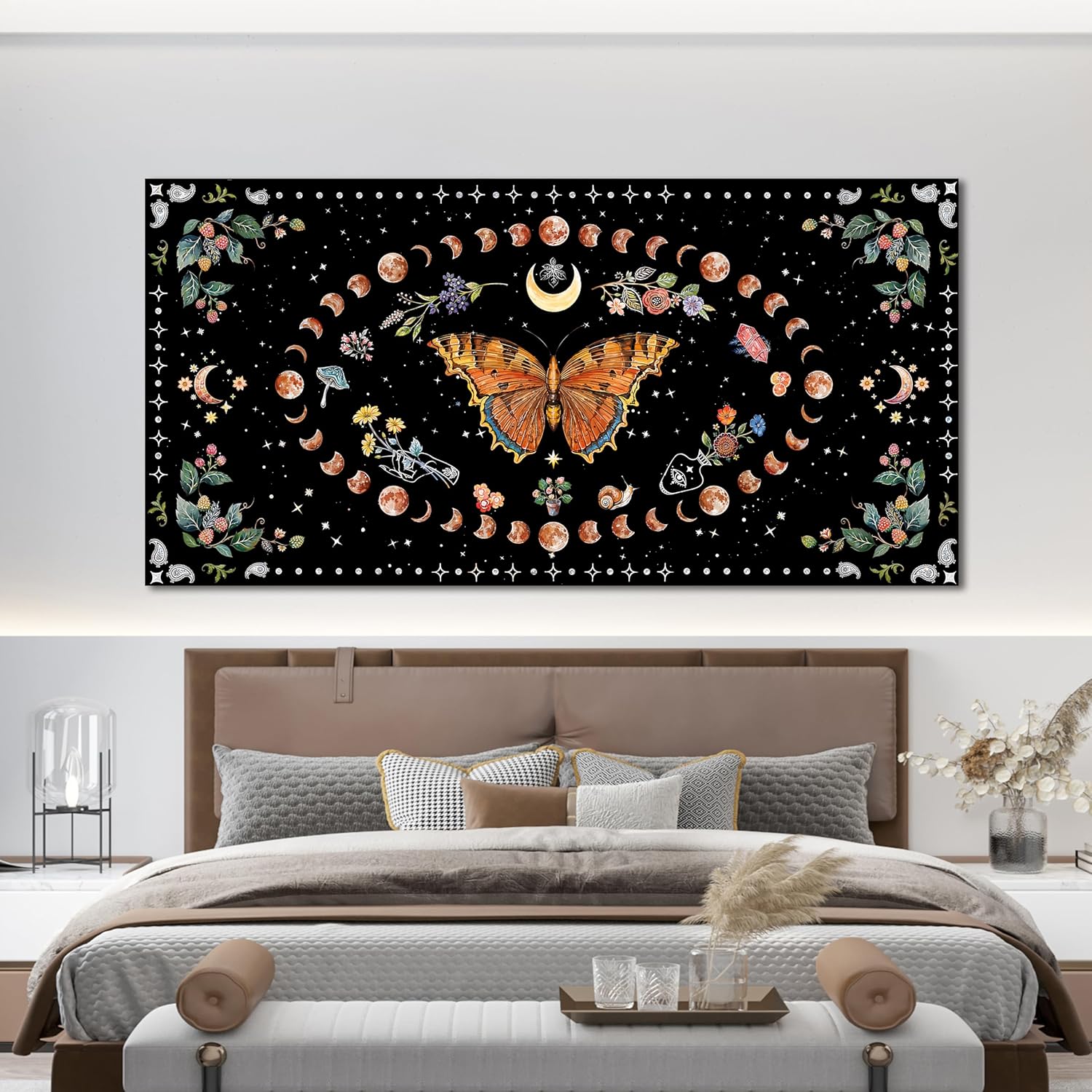 Large Canvas Wall Art Boho Wall art Decor Canvas Art Wall Decor Pictures for Living Room Vintage Butterfly Wall Art Decorations Large Artwork for Walls Moon Flower Home Office Wall Decor 29"X58"
