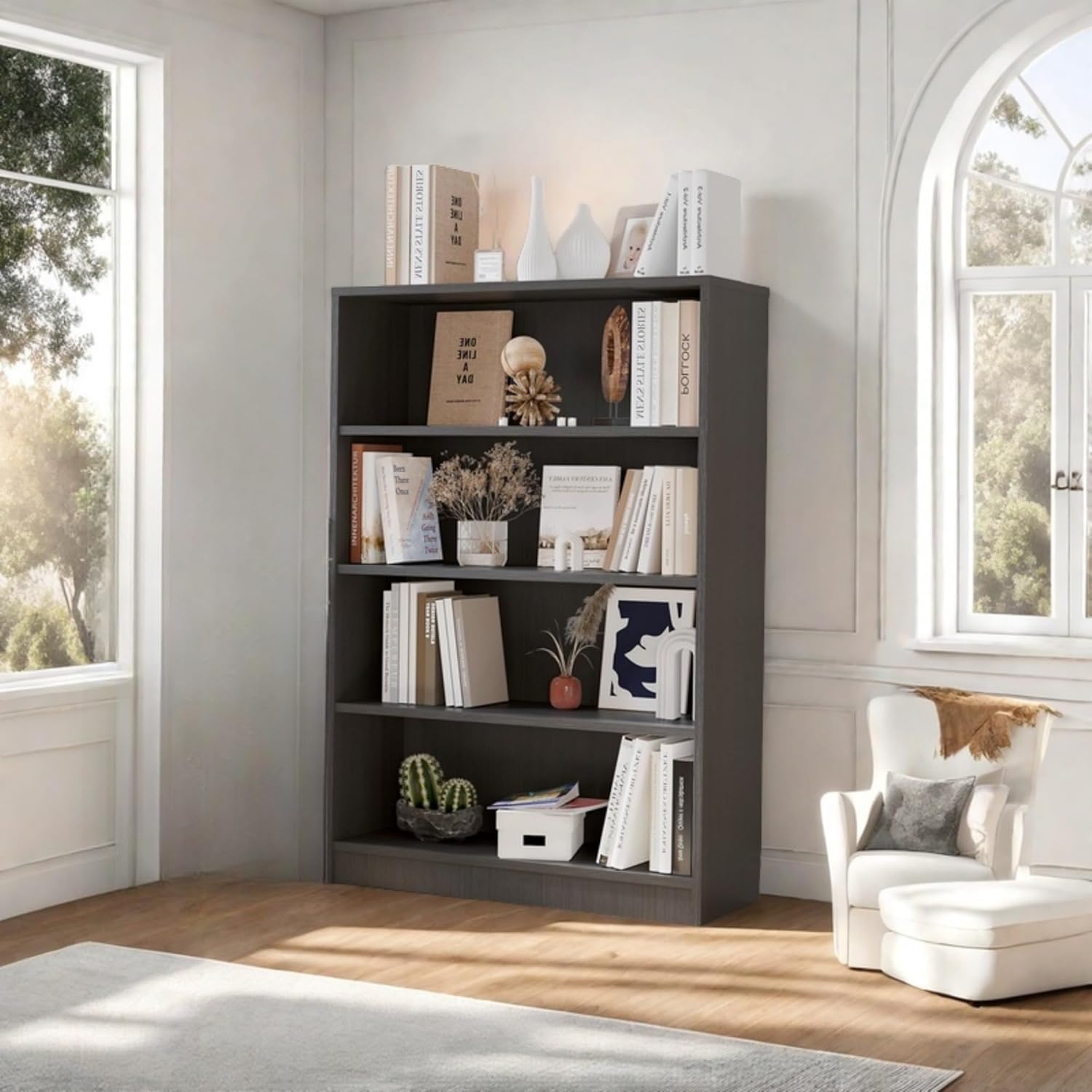 Bookshelf, Open Modern Bookshelf, 4 Shelf Bookcase with Freestanding Display Storage, Wooden Book Shelf for Bedroom, Living Room, Dinning Room, Office, 48 Inch, Gray
