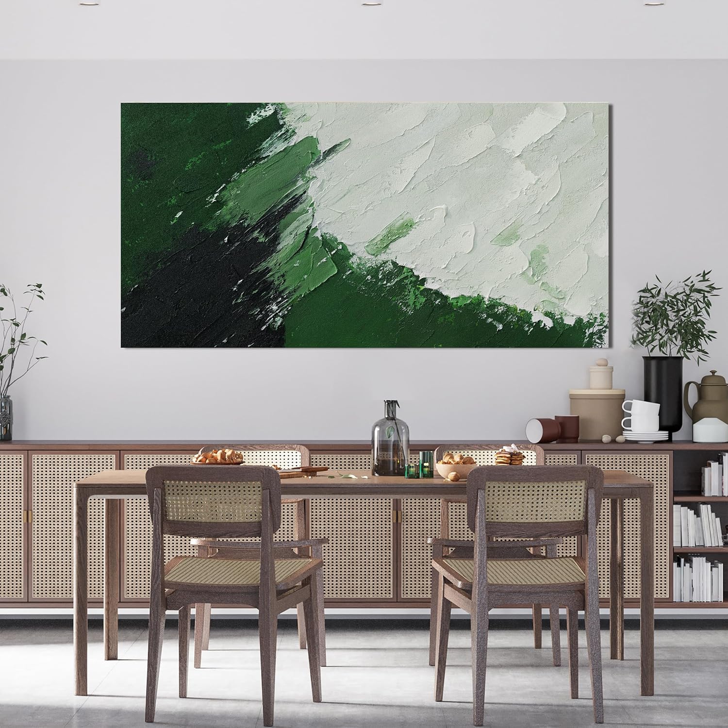 Canvas Wall Art Decor Large Green Abstract Wall Art Prints Wall Art Pictures for Living Room Canvas Art Wall Decor Modern White Wall Art Abstract Artwork for Walls Bedroom Office Decor 24" X 48"