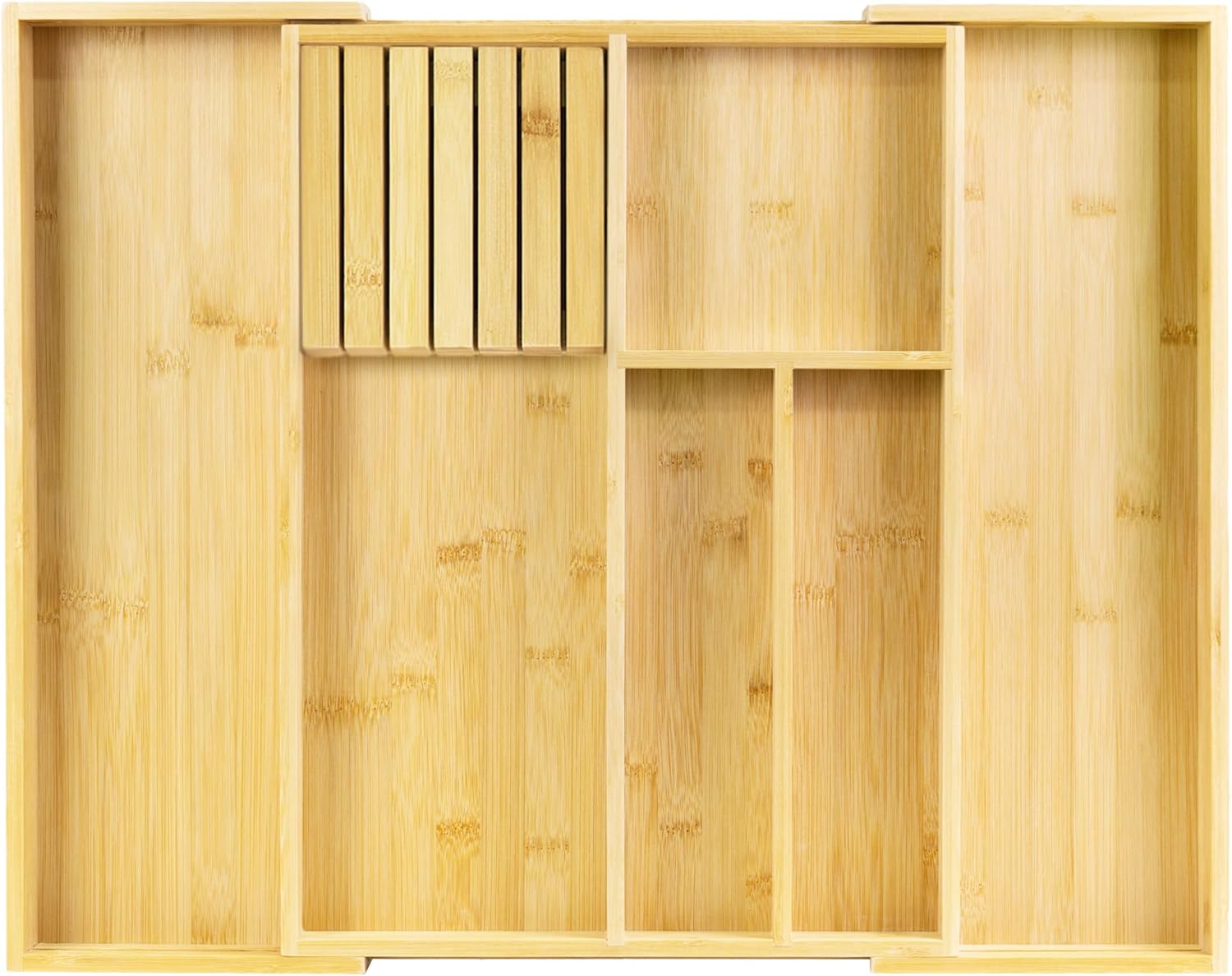 - VERSATILE DESIGN: Large wooden utensil organizer with 6 compartments for organizing silverware, cooking tools, and kitchen accessories in standard-sized drawers