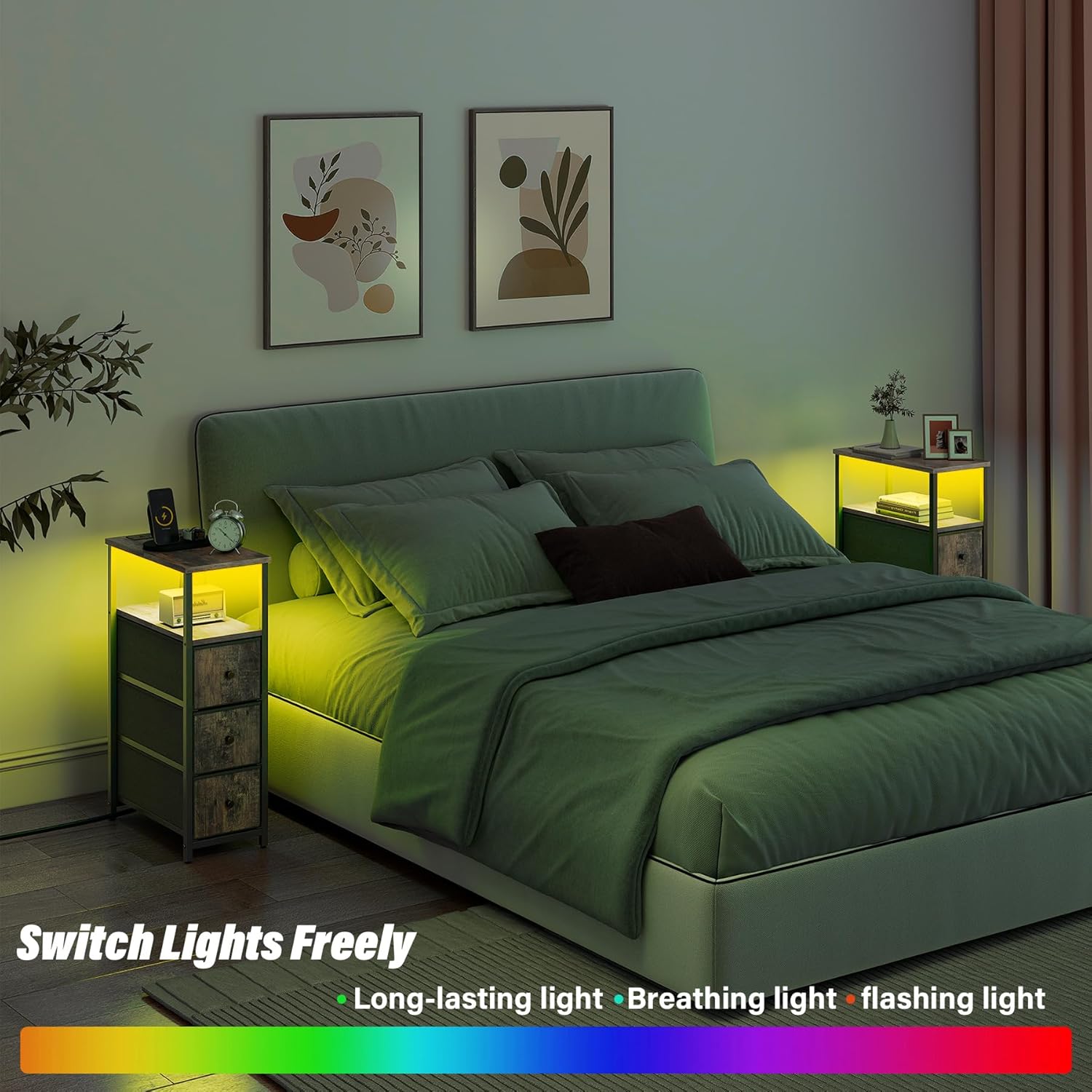 - [Easy to Assemble and Clean] This narrow side table comes with numbered parts and clear instructions to help you finish the assembly easily. You just need a damp cloth to keep the LED living room side table clean. Equipped with adjustable foot mats to accommodate uneven surfaces and prevent scratching the floor.
