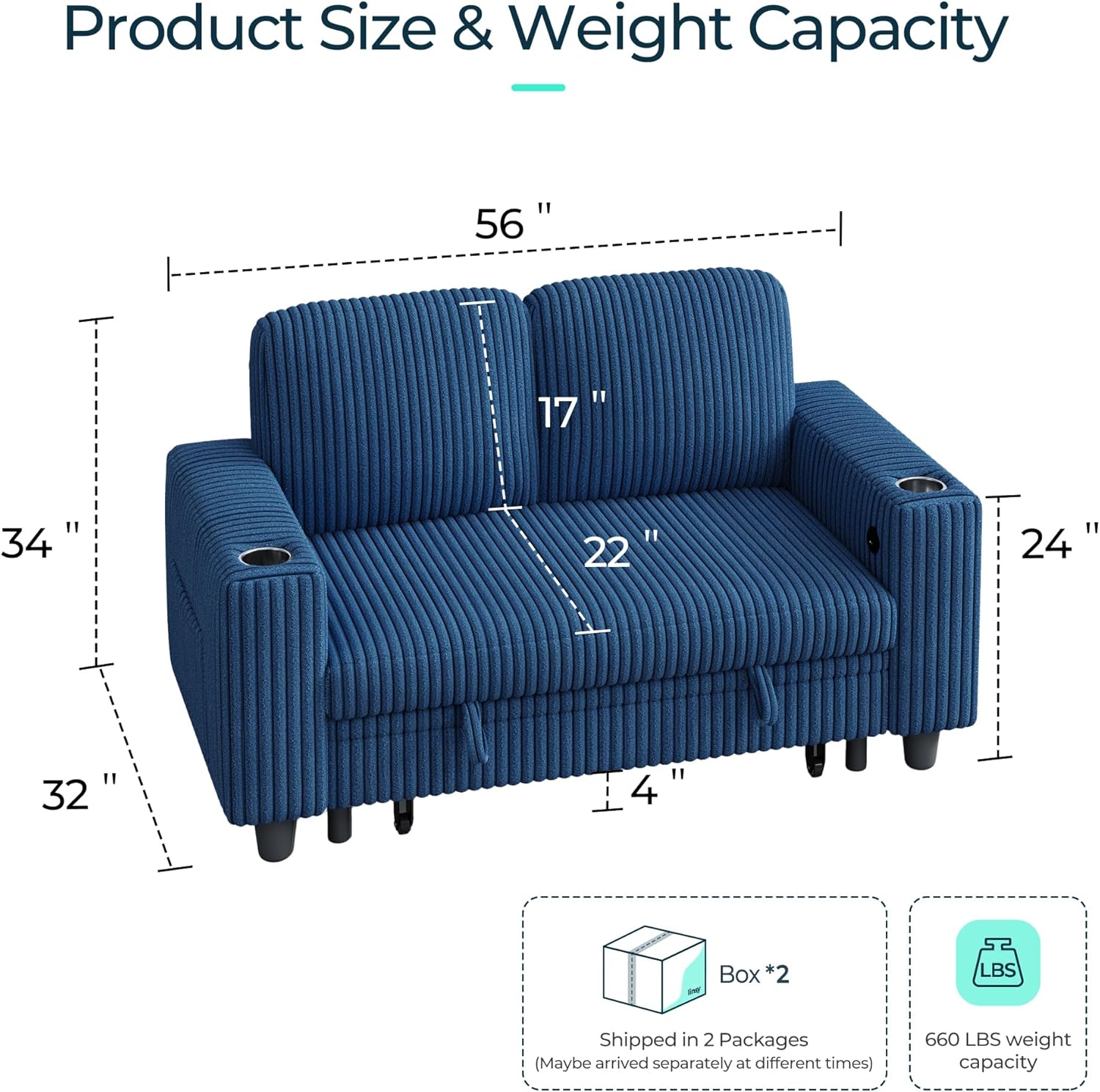 - NOTE: The sofa comes in two boxes and may arrive at different times