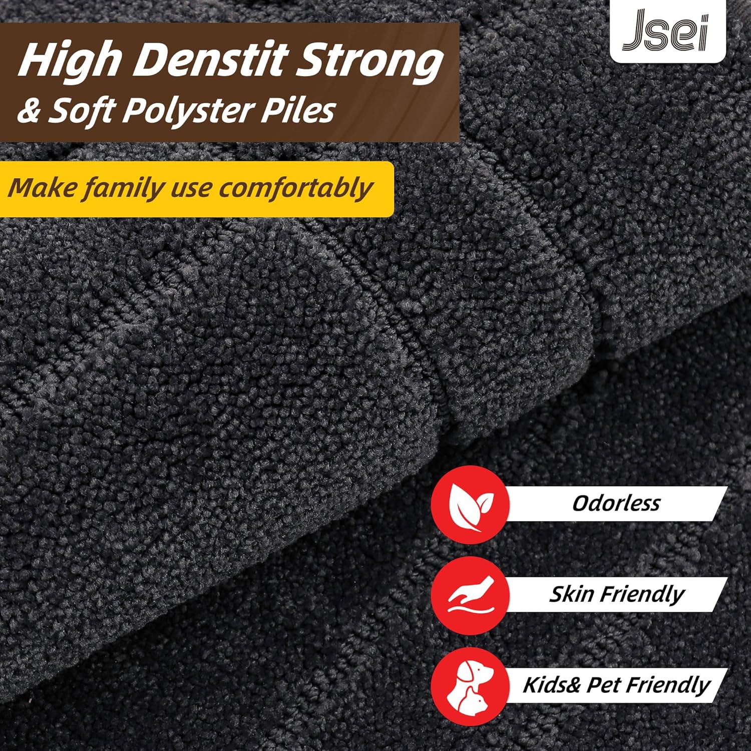 JSEI Entryway Rugs Doormat 32"x48", Non-Slip Dirt Trapper Door Mats Indoor, Washable Absorbent and Stain Resist Welcome Floor Mat for Front Door, Dog Door Mat, Muddy Wet Shoes & Paws, Dark Grey