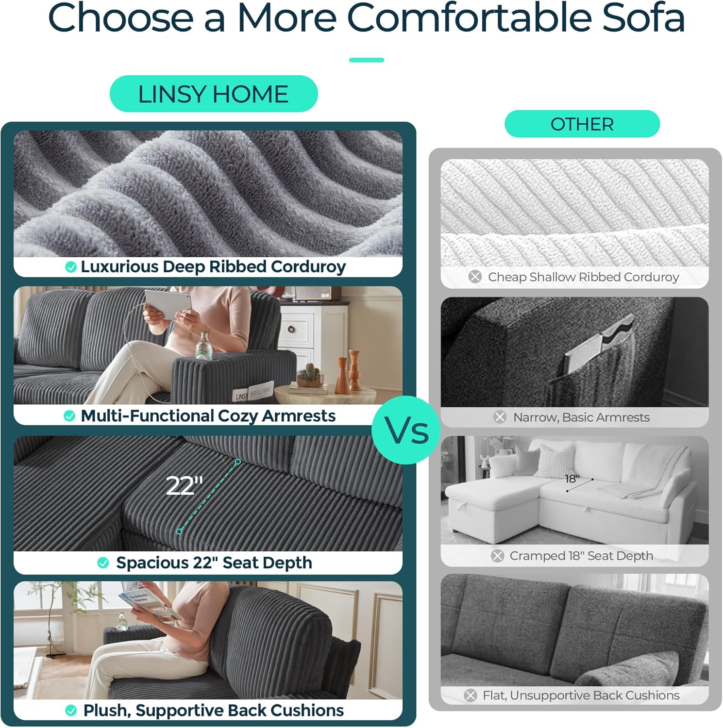 - Modular Sectional Sofa with Storage: LINSY HOME modular sectional sofa can be customized to fit your space needs with your sofa bed combinations, offering unlimited combination options. Our sofa beds are equipped with storage space for you to organize your space, you can store blankets, pillows, toys, miscellaneous items, etc., and store your daily items in a hidden place