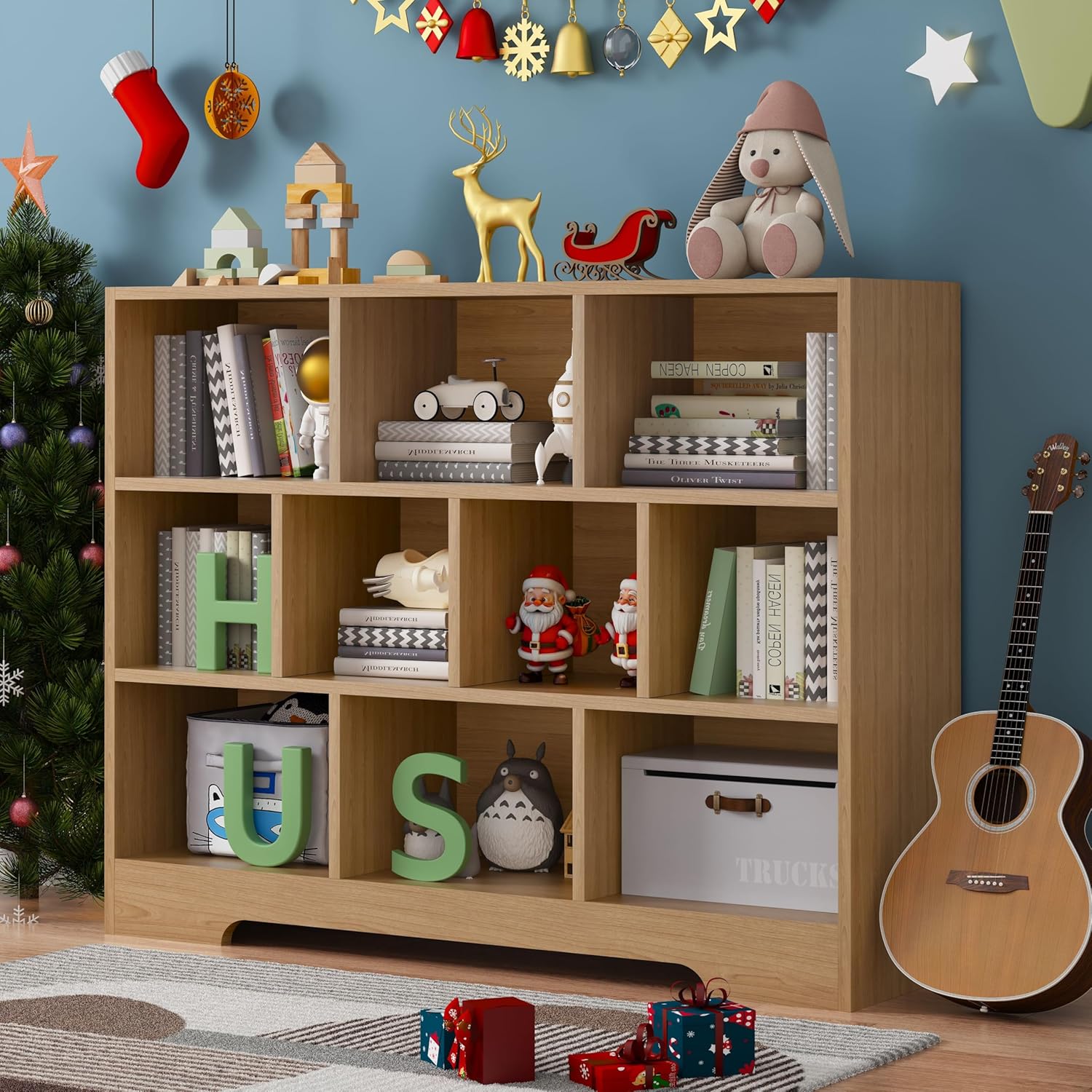 Book Shelf, 10 Cubes Storage Organizer, 3-Tier Open Shelf Wooden Bookcase, Freestanding Wooden Bookshelf Cube Shelf for Bedroom, Living Room