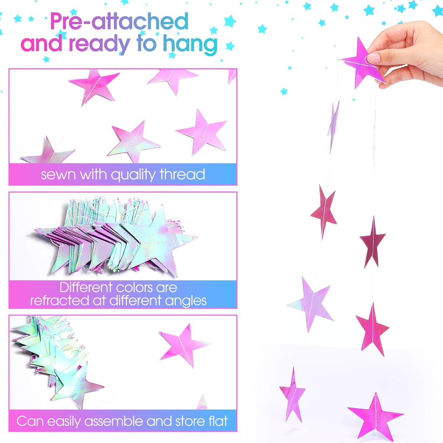 Patelai Glitter Star Garland Banner Decor 130 Feet Star Hanging Bunting Banner Twinkle Backdrop for Homecoming Classroom Wedding Birthday Halloween Christmas Party Supplies(Iridescent Purple)