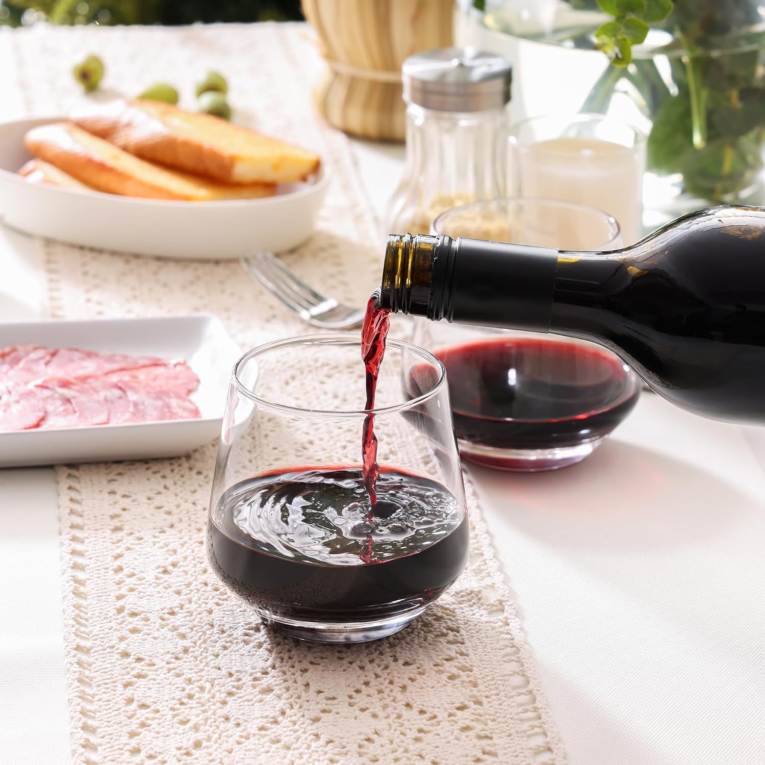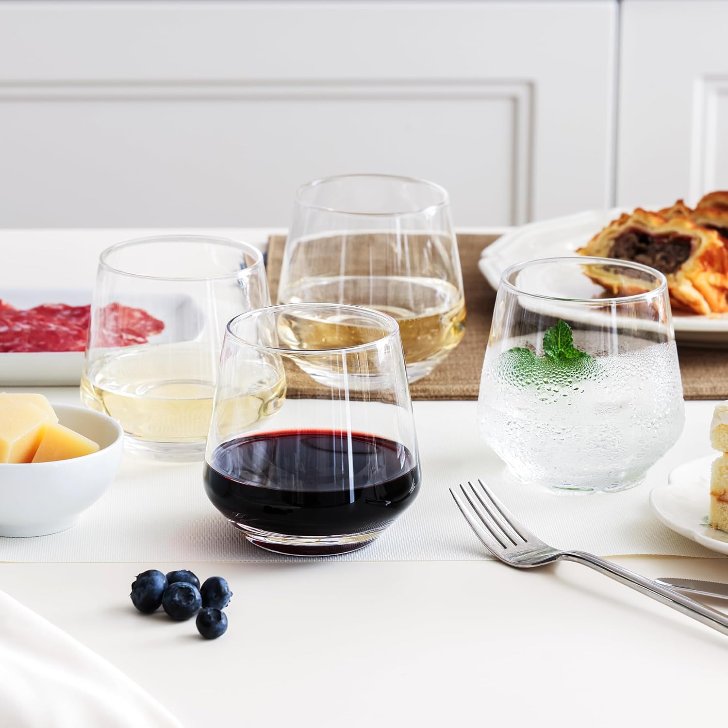 Stemless Wine Glasses Set of 6, 13.5oz Red White Wine Glasses for Daily Use, Hosting, Home Bar, Evening Party, Birthdays, Housewarming Gift, Clear
