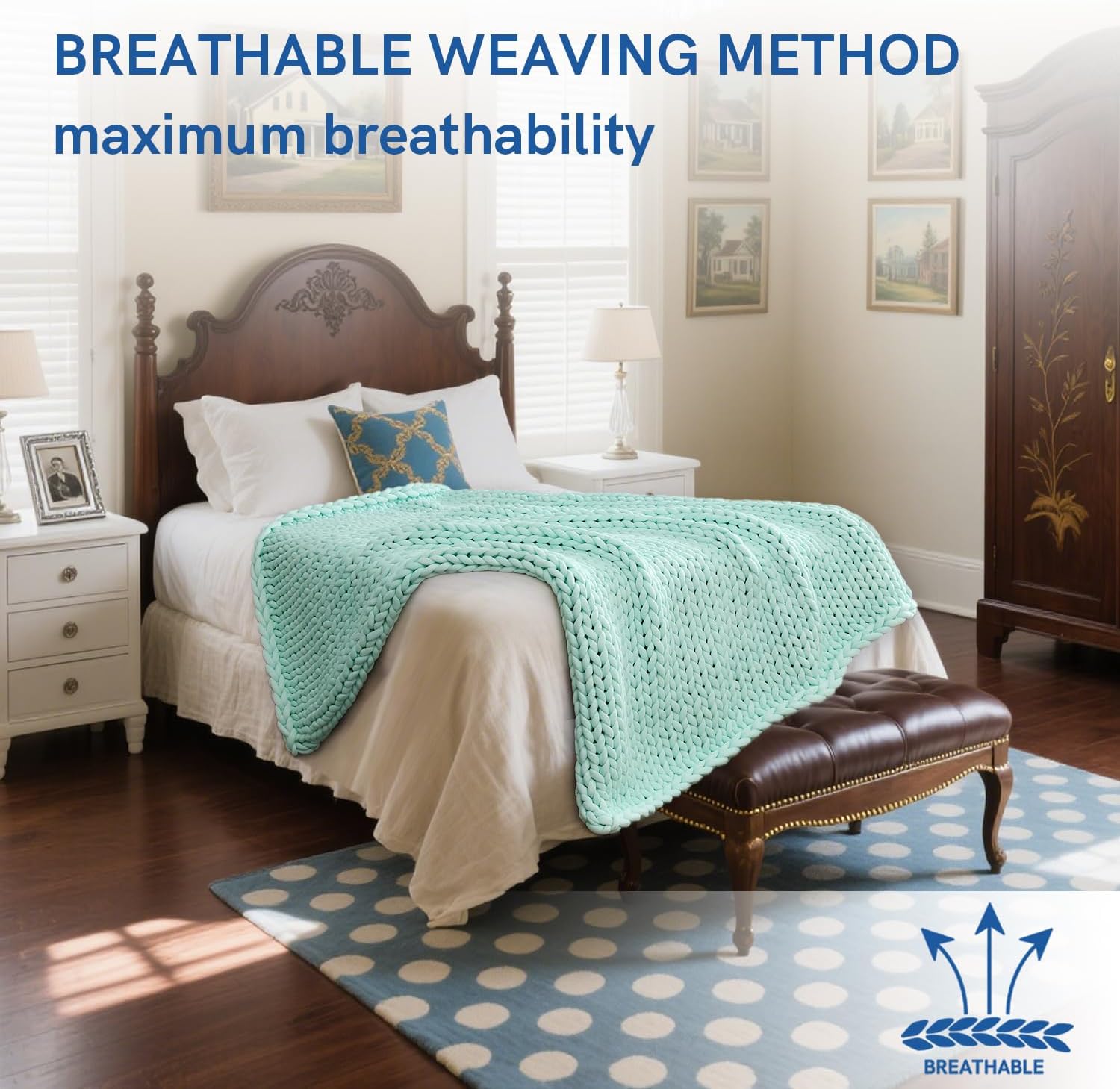 YnM Cooling Chunky Throw Blanket, Medium-Weight, Hand Knitted, Skin Friendly, Ventilated and Breathable, Machine Washable, Home Décor Piece for Couch, Sofa and Bed (Menthe Green, 60x80 Inch)