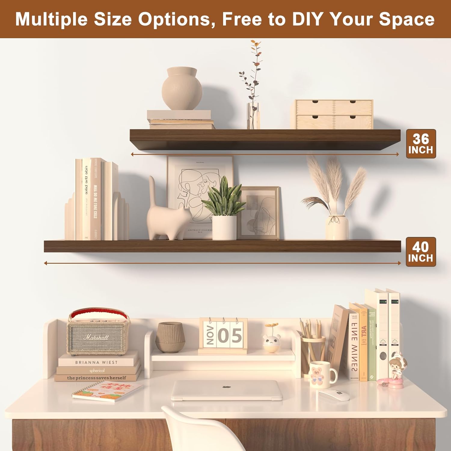 - ăMulti-Room Functional Decoră- From bathroom toiletries to bedroom plants, these wall mounted wood shelves adapt to any space. Their neutral finish suits farmhouse, industrial, or Scandinavian stylesâperfect for both storage and display.