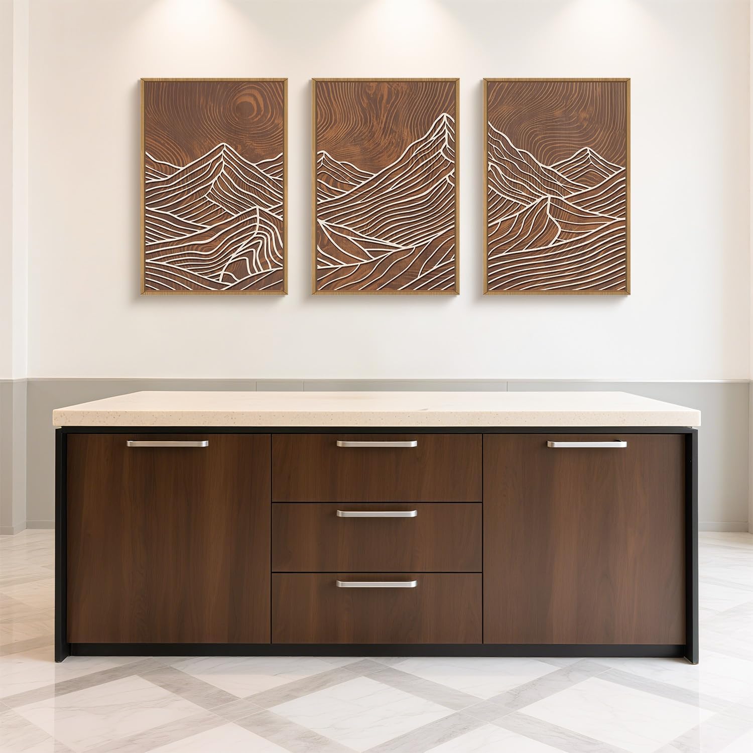 - 【Country Line Style Wall Art】The decorative paintings feature a unique style design with dark background as the primary tones. The most distinctive feature of this product is the embellishment of the imitation wood-carved mountains with white lines