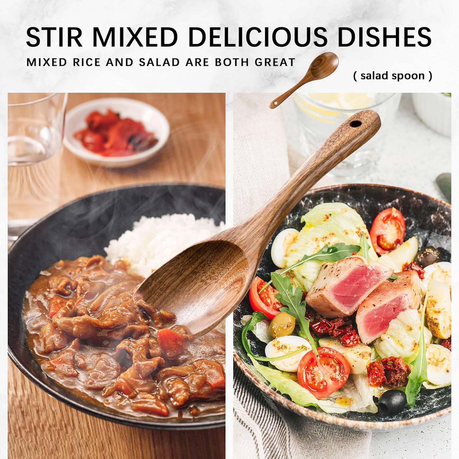- ALL-IN-ONE UTENSIL SET:Get a complete cooking solution with our Wooden Utensils for Cooking Set with wood spoons and spatulas.Versatile tools for all your cooking needs