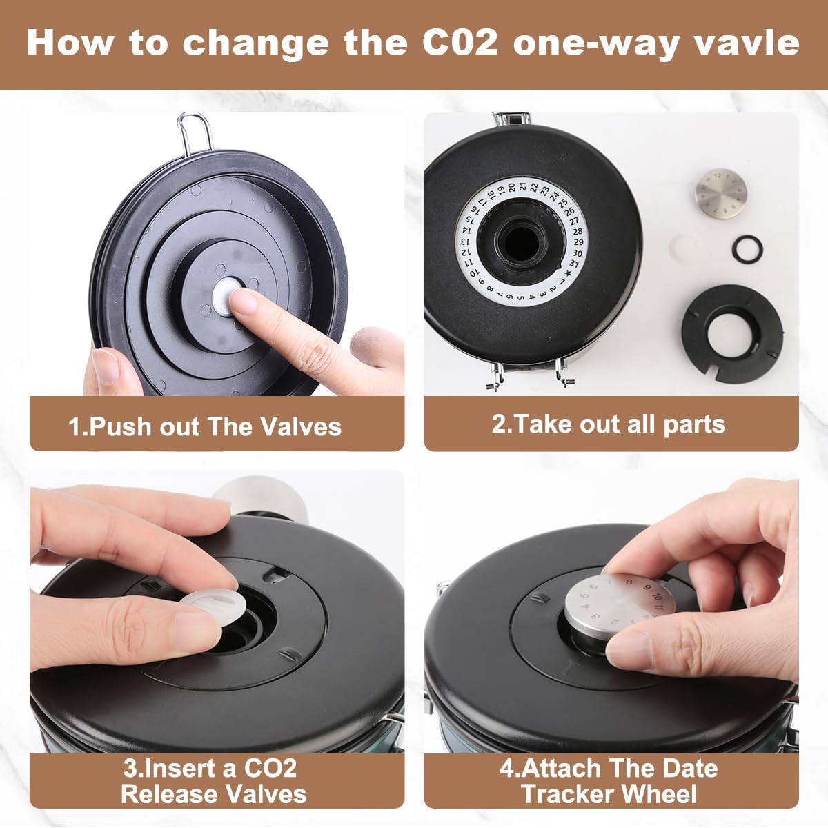 - STRONG SEALING:This coffee storage airtight canister adopts a one-way CO2 valve, which can release carbon dioxide from the airtight coffee containers, effectively isolating oxygen and water vapor from entering the coffee jars, preventing the food inside the coffee jar from getting wet, and thus maintaining the freshness of the coffee beans