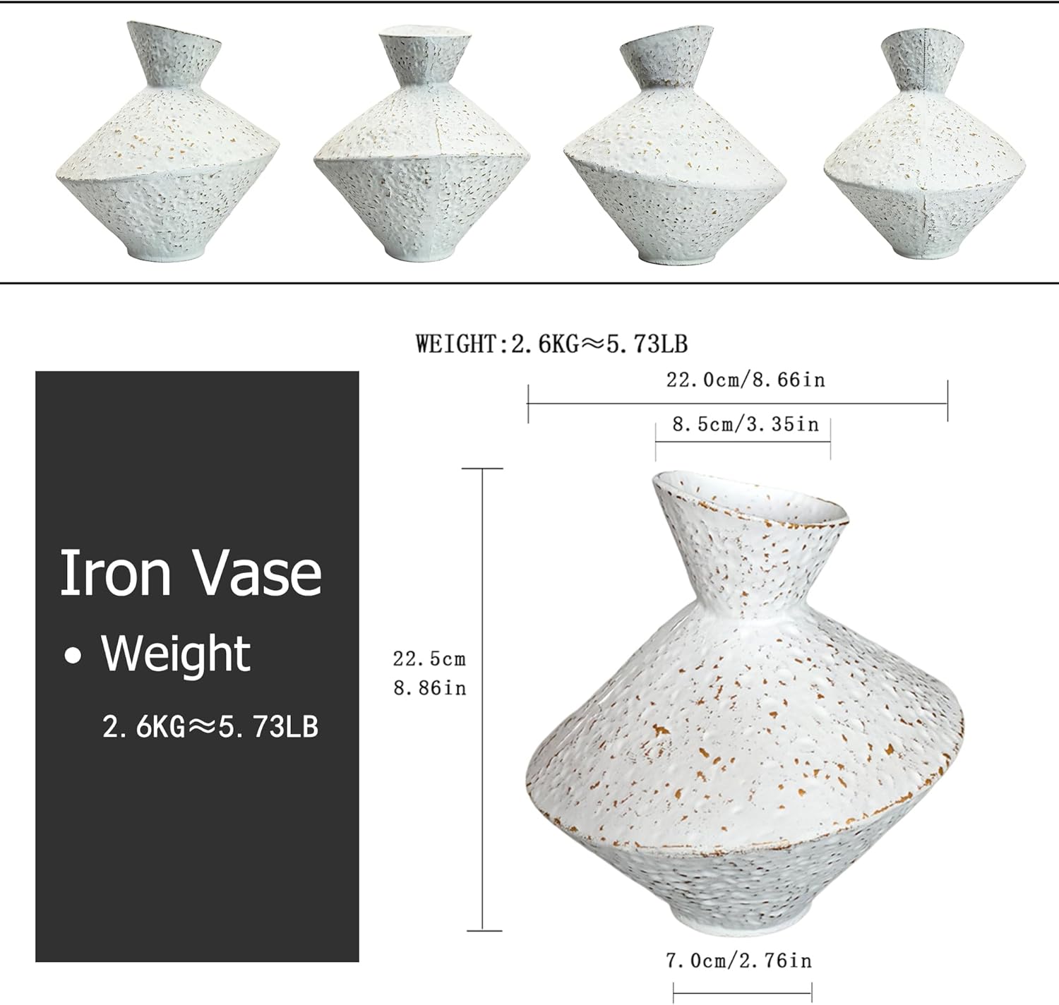 Cast Iron Decorative Vase, Dried Flower Rustic Vases, Wabi Sabi Vase for Modern Home Decor, Living Room, Shelf Decor, Enterway, Wedding, Office, Table, Bedroom, Kitchen, 8.86" H (White)
