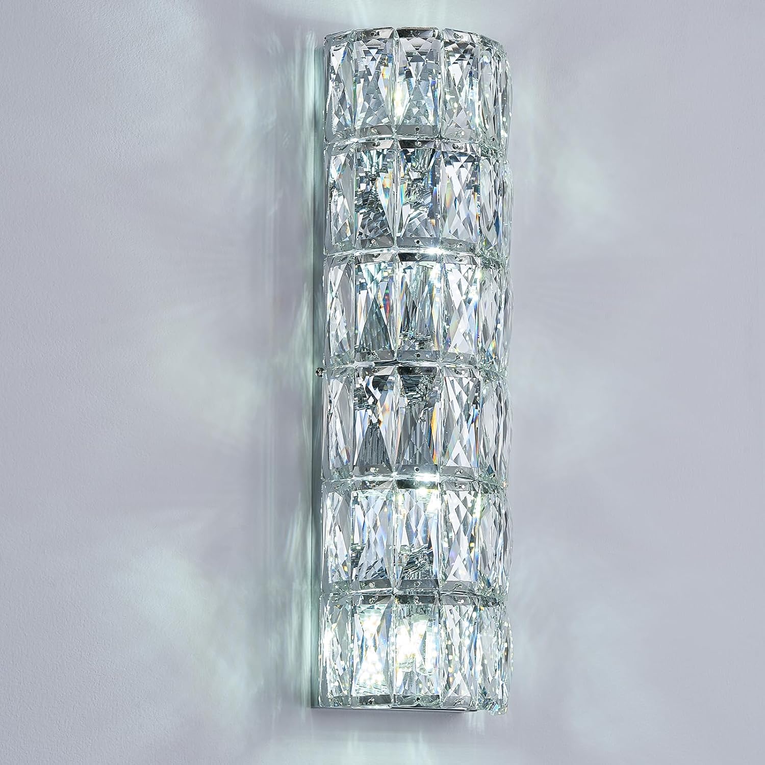 - 【Elegant design】This wall sconce features a tube-shaped lampshade with 6-layer elegant crystal blocks and is dressed in chrome finish, showing an elegant modern style and adding a touch of brilliant view to your interior home.
