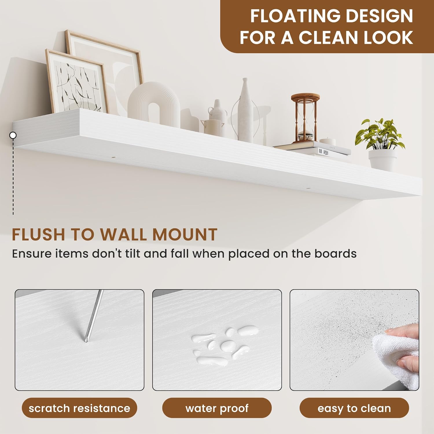 fuqing Floating Shelves for Wall, Bathroom Shelf Wall Mounted for Storage, Shelves with Invisible Bracket for Bedroom, Kitchen, Living Room, Farmhouse Small Book Shelf, 55 Inch Set of 2, White
