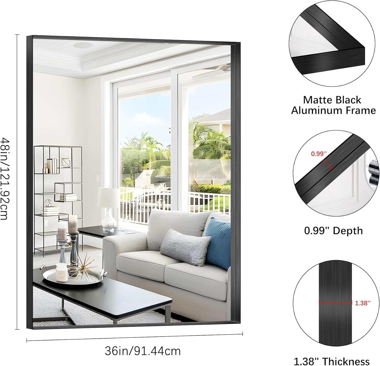 Black Bathroom Mirror, 36x48 Inch Rectangular Deep Frame Mirror, Large Wall Mounted Bathroom Vanity Mirror Over Sink for Bedroom,Restroom, Living Room, Hangs Vertically or Horizontally