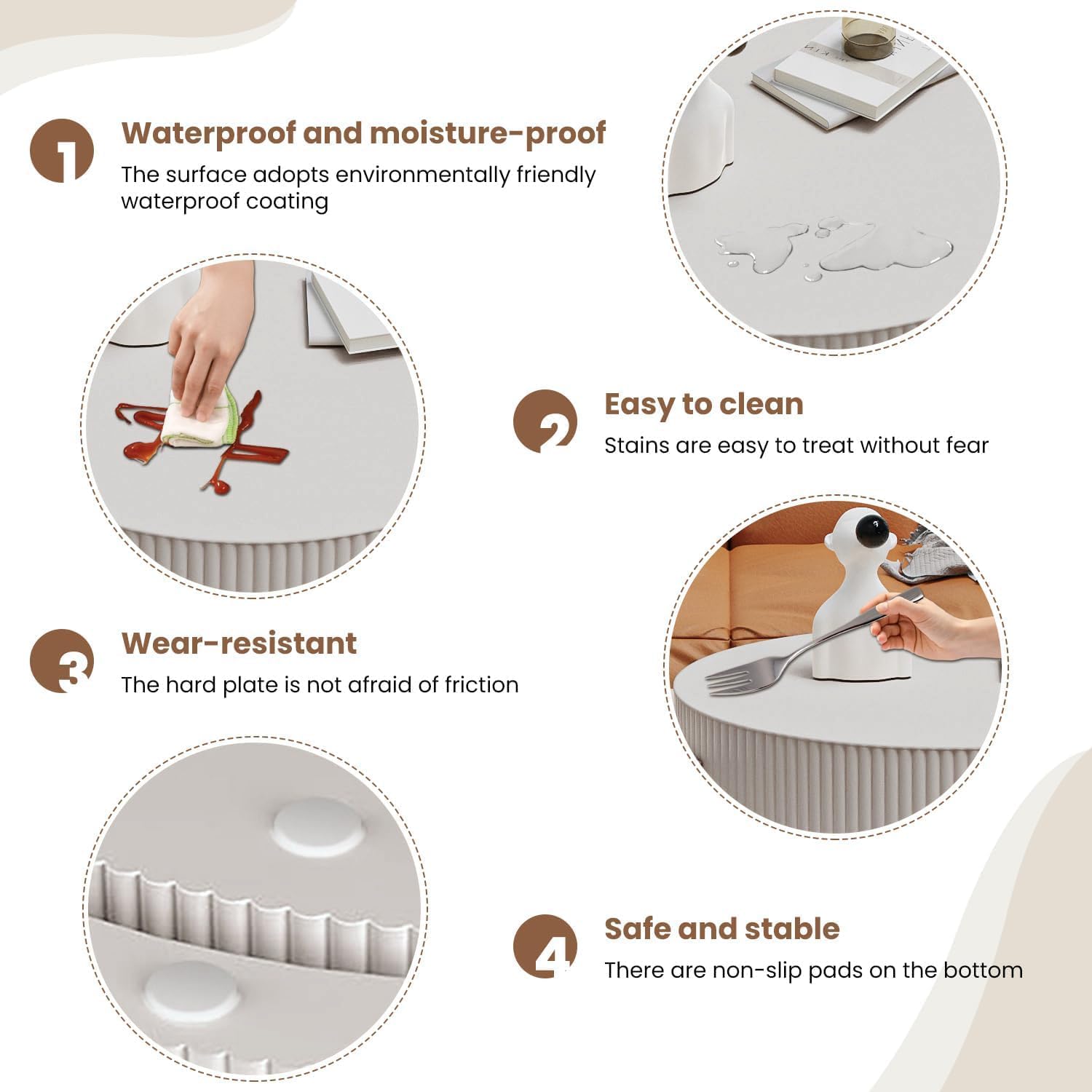 - STURDY AND STYLISH SUPPORT: The modern tables feature robust yet simple supports that add both stability and a touch of elegance. This ensures they are not only functional but also enhance the overall appearance of your living area, blending seamlessly with your existing furniture.