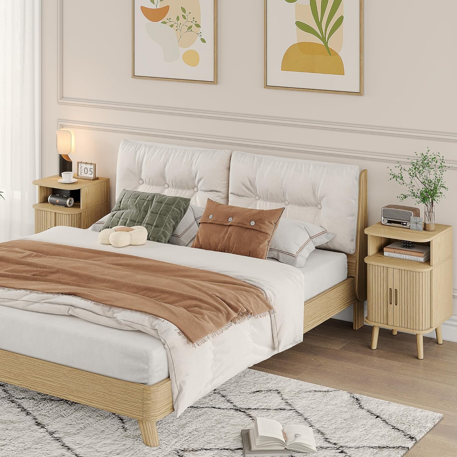 - 【Modern Natural Style 】: Our mid century modern wood end tables set features the oak grain, sleek curved round edges and fluted striped design, which makes it looks more streamlined and softer, adding a touch of natural boho modern atmospheres to your room space.