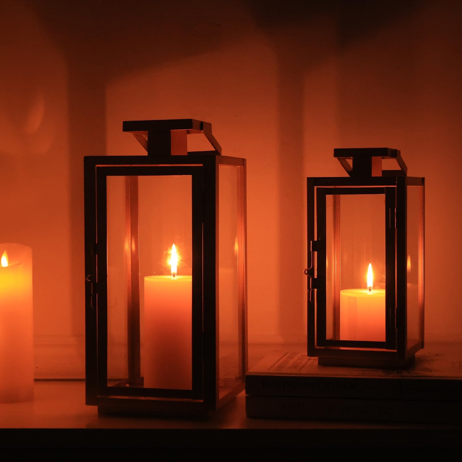 - Minimalist and elegant modern lantern decoration—this tempered glass lantern with a golden frame brings lasting elegance to your space. The ultra-clear glass transmits the flickering candlelight, not only enhancing the ambient lighting effect but also creating a warm and peaceful atmosphere, as if it were a sanctuary for the soul. Decorating your fireplace, table, shelf, or wall with this elegant lantern is an excellent idea!