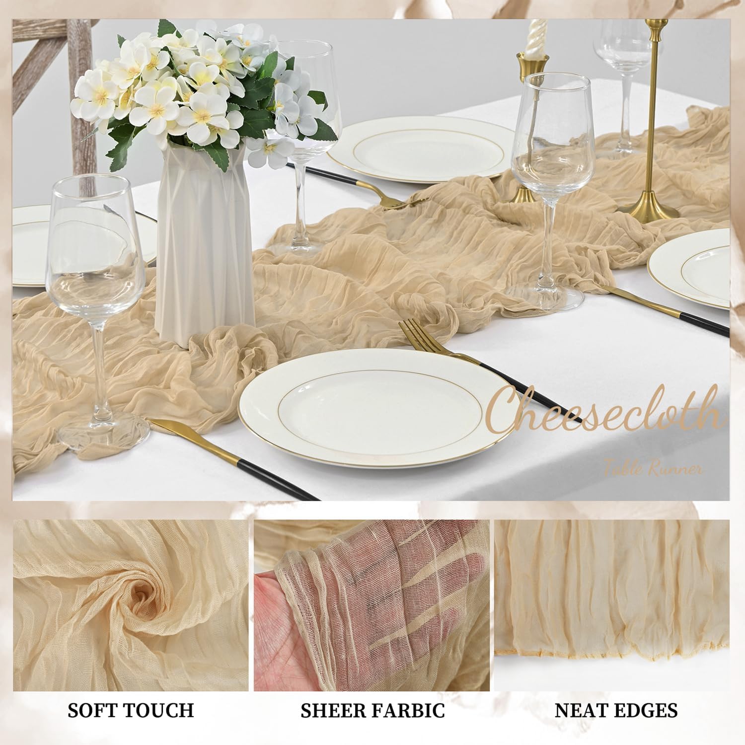 Sand 20 Pack 10FT Cheesecloth Table Runner 20 x 120 Inch Long Rustic Gauze Cheese Cloth Table Runner for Wedding Bridal Baby Shower Table Decorations Boho Fabric Sheer Birthday Party Table Decor
