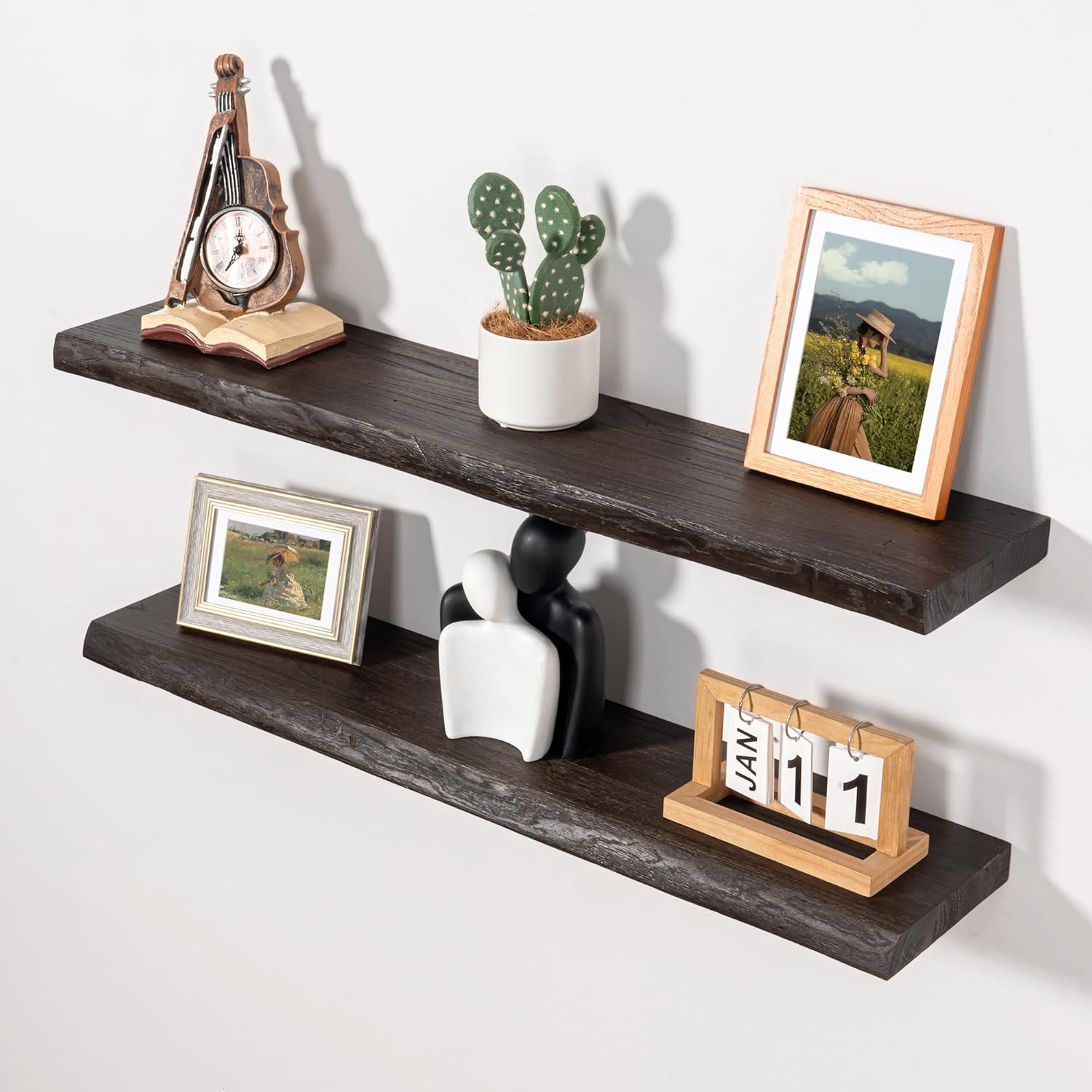 - Beautiful Live Edge: Axeman wall shelves feature real live edge wood, making each one unique and visually interesting. The irregularly curved edges add a touch of character to any space