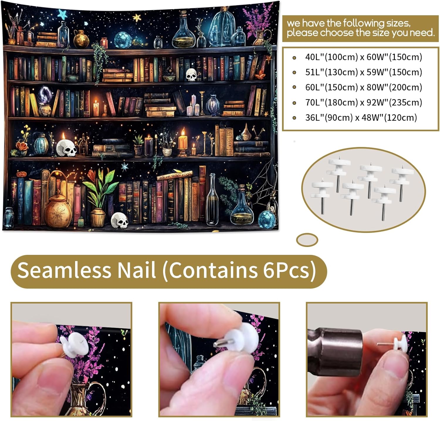 - DESIGN :The Magic Bookshelf Tapestry adopt HD digital printing,Donβt worry about fading,vibrant colorful design will light up your room!