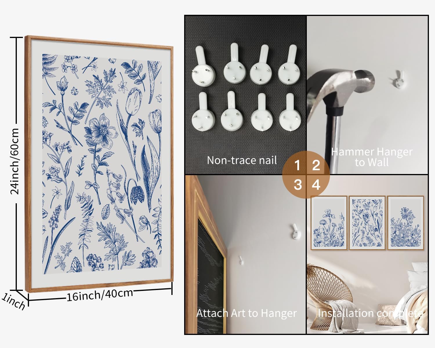 - Easy to Hang:Each piece comes with pre-installed hardware for effortless mounting, allowing you to quickly transform your space without hassle