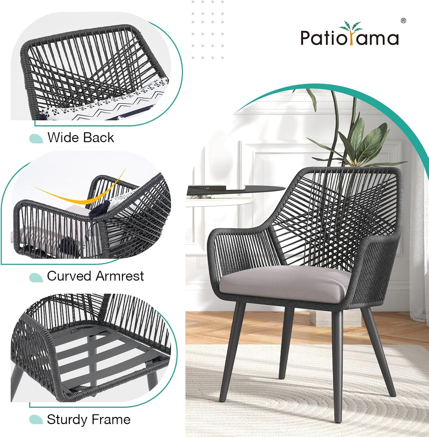 - 🍴【Comfortable Ergonomic Design】: With contoured armrests and high backrest providing optimal lumbar support, you will feel unparalleled comfort and relaxation while enjoying your meal. Whether it's a family gathering or a formal banquet, this patio dining chair can make your dining experience more enjoyable.