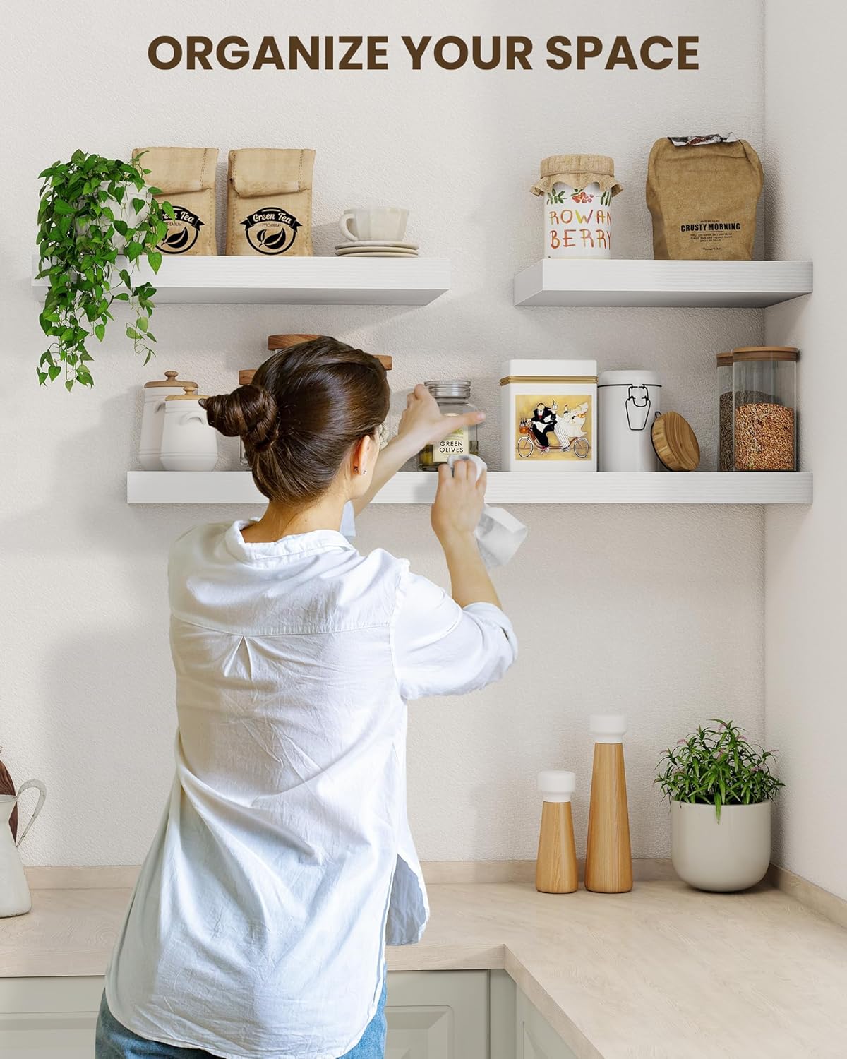 - Sturdy & Reliable: Robust construction floating shelves for wall supports everyday items (books, decor, bathroom essentials, kitchen spices) with stability, combining practicality with timeless style