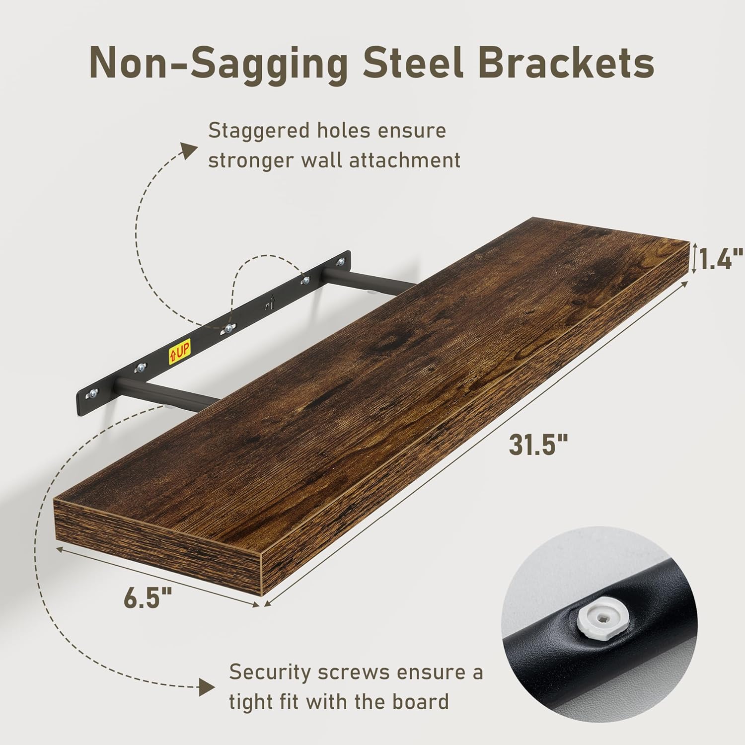 Fun Memories 32 Inch Floating Shelves Wall Shelf Set of 3, Rustic Farmhouse Home Decor Kitchen Living Room Shelves Wall Mounted, 32 x 6.7 x 1.4 Inch, Rustic Brown