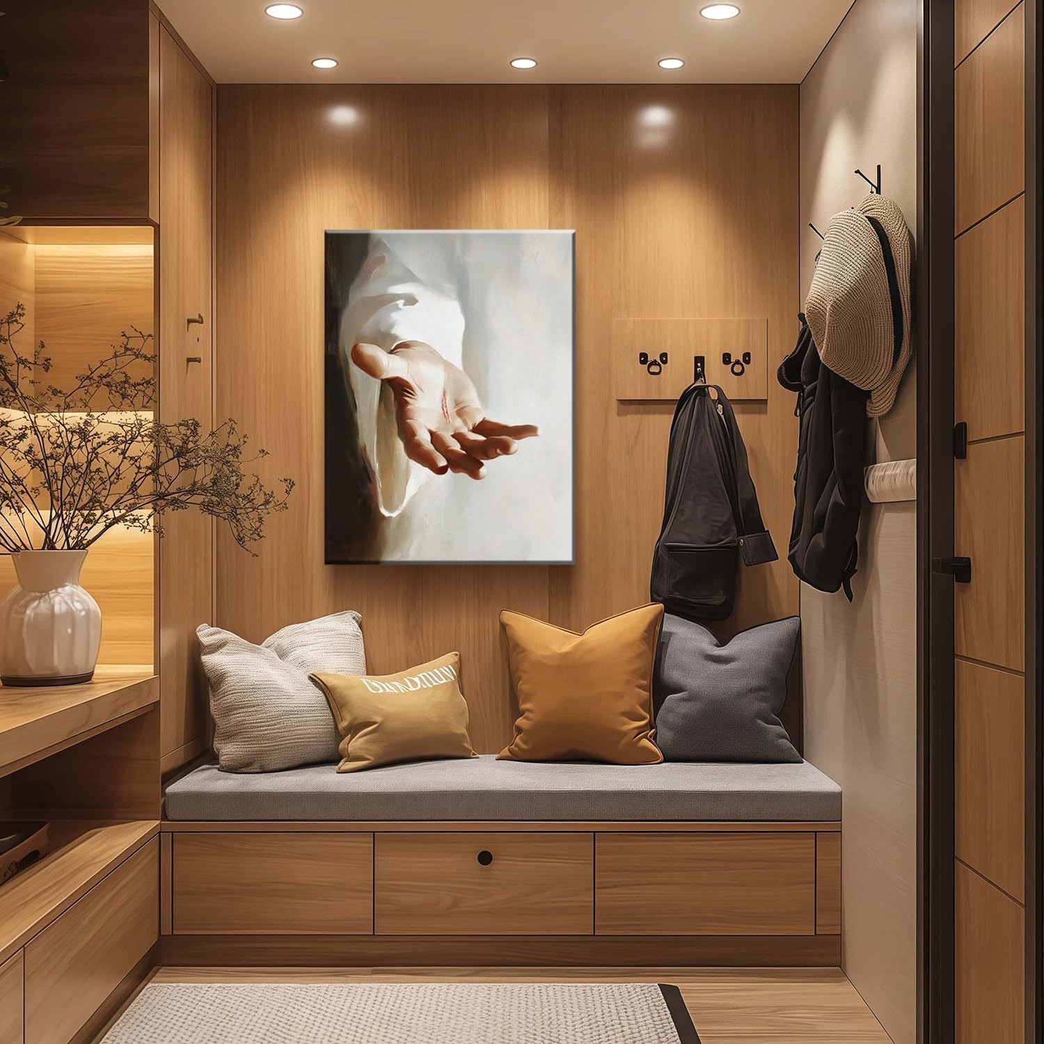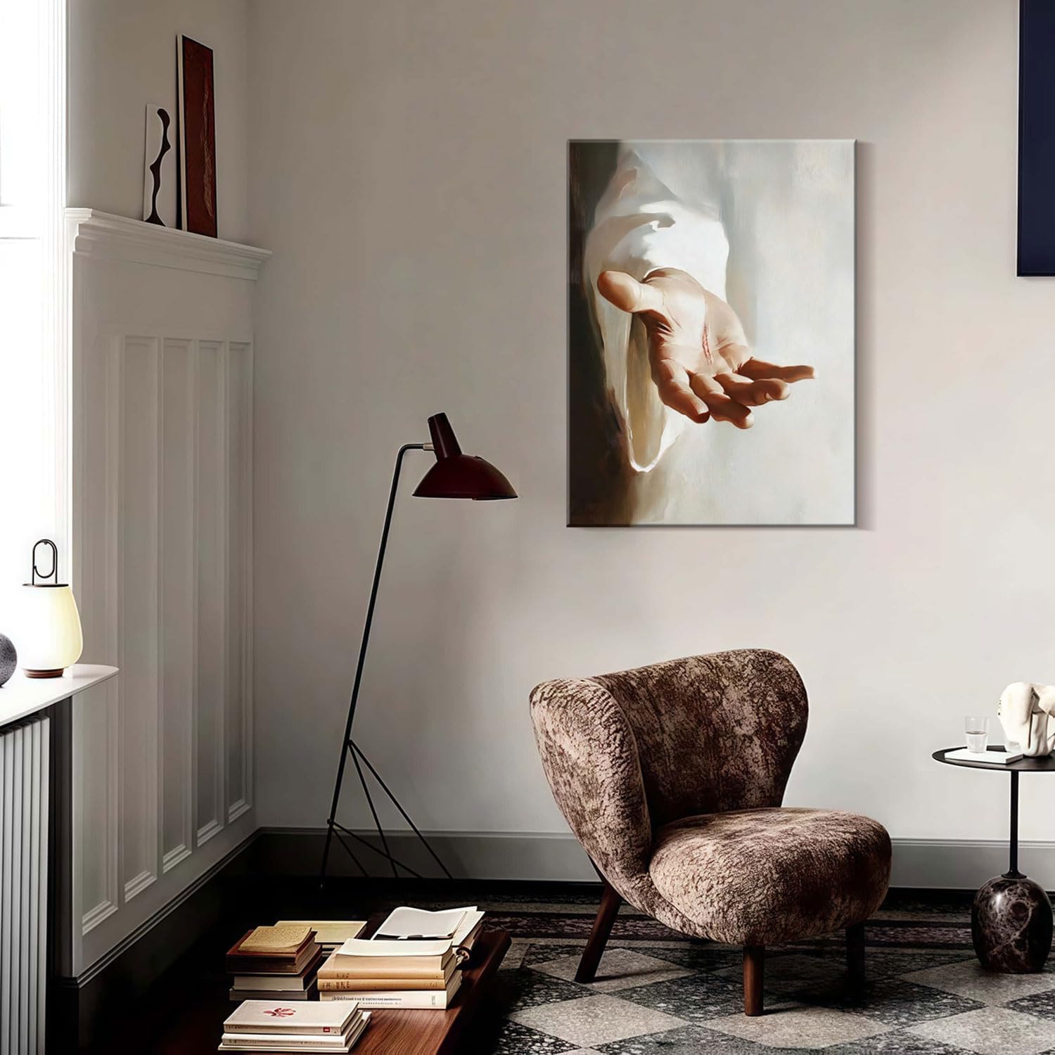 - High-Quality Canvas Print This 16X24 inch canvas print features a powerful and touching image of the hand of Jesus, beautifully printed on high-quality canvas. The intricate details and vibrant colors make it a meaningful and inspiring addition to any space.