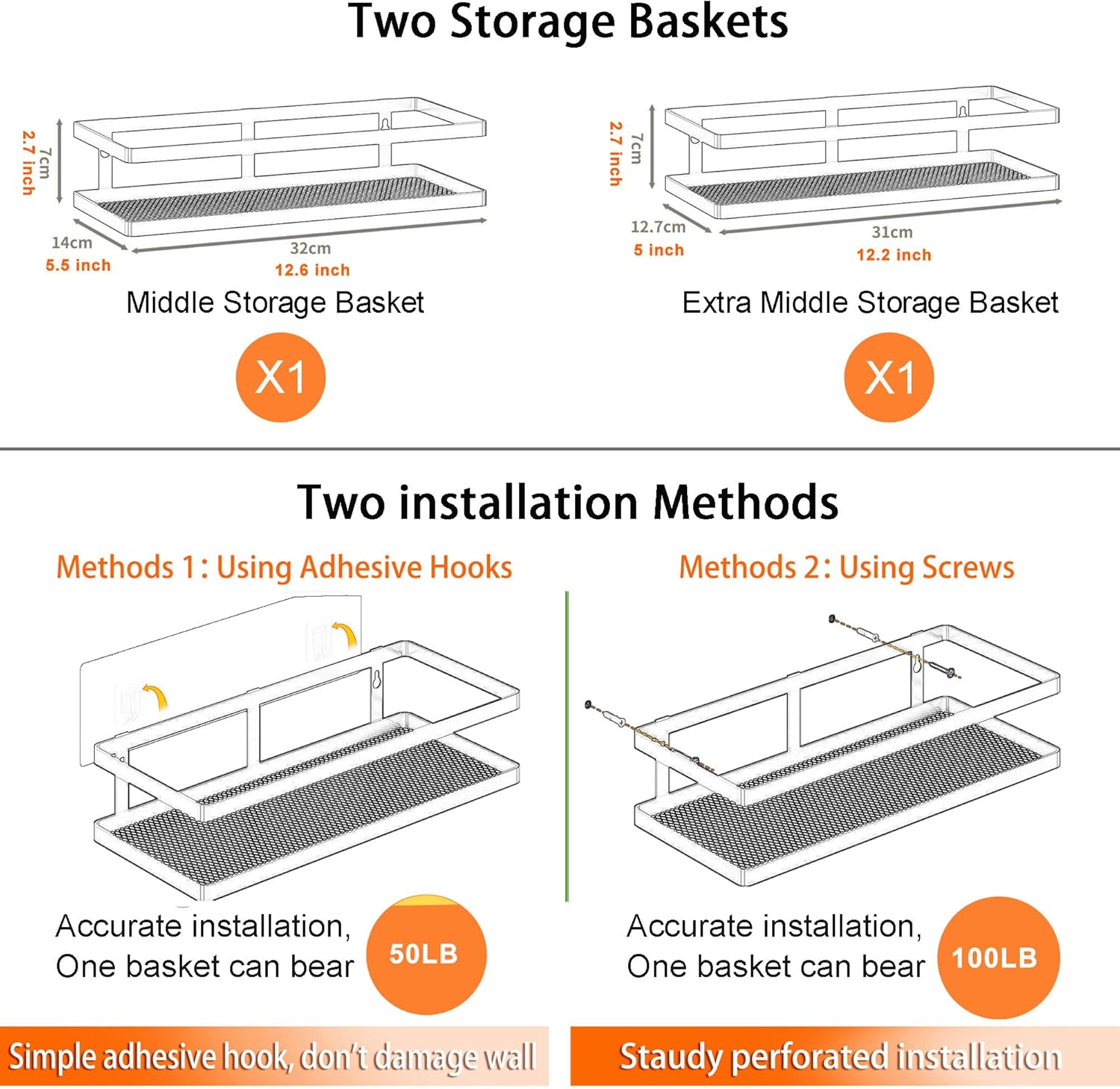 PUSDON Metal Wall Hanging Basket 2 Packs DIY Suitable for Multiple Scenes - Middle White Guardrail Suit
