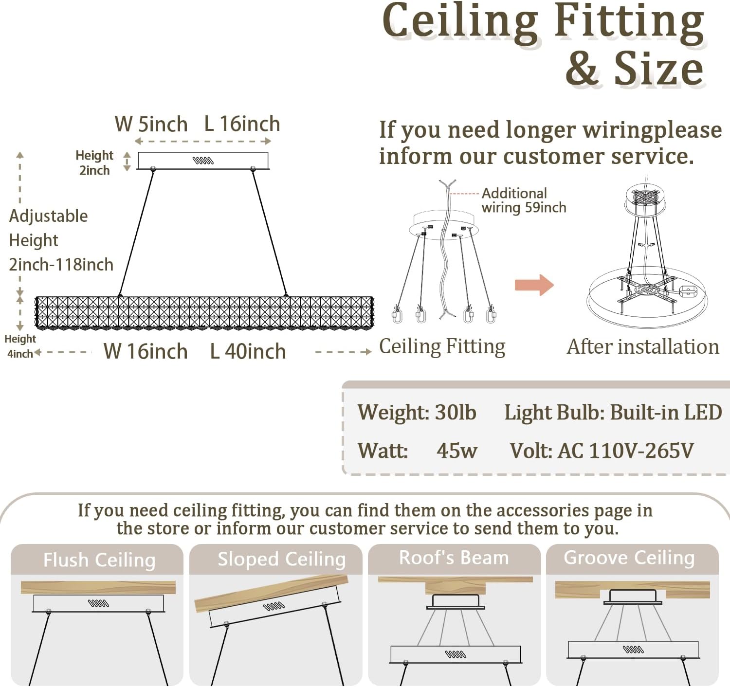 - 【Regarding post-purchase matters】Within 8 years, we will be able to provide you with accessories related to the chandelier and strive to resolve any issues.