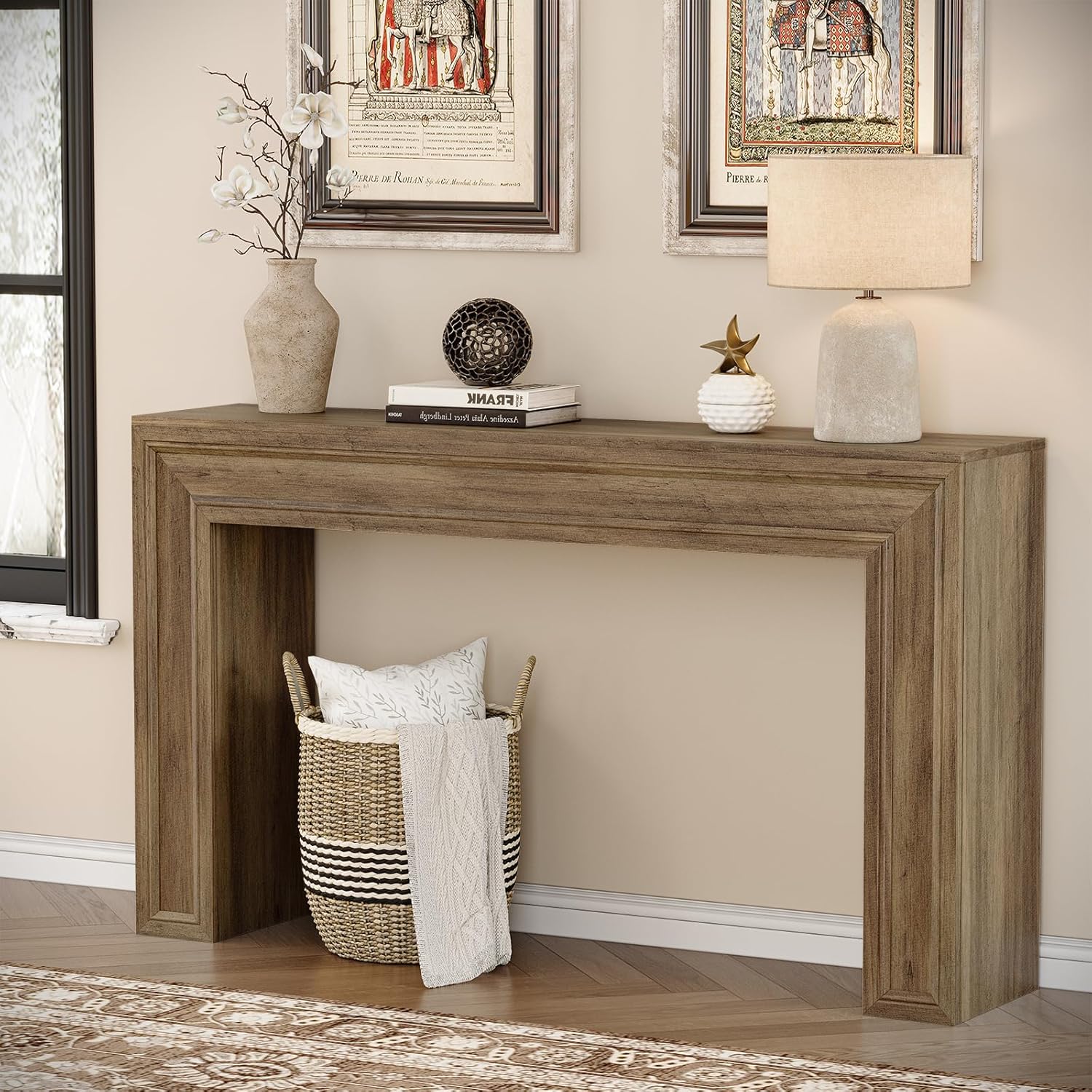 - FARMHOUSE & COUNTRY STYLE: Drawing inspiration from farmhouse design, this woodgrain console has a vintage yet minimalist appeal that creates a warm and pleasant atmosphere in your home.