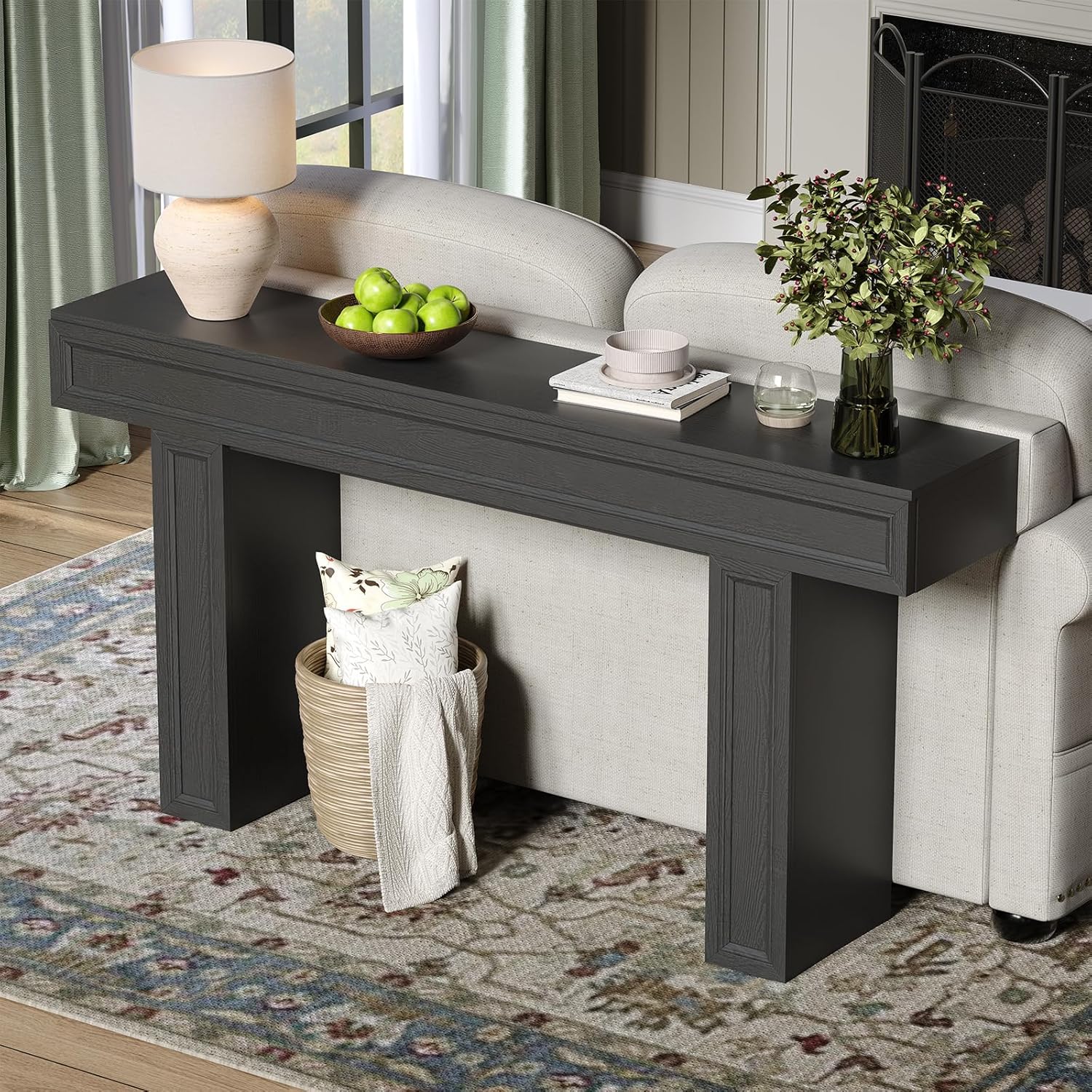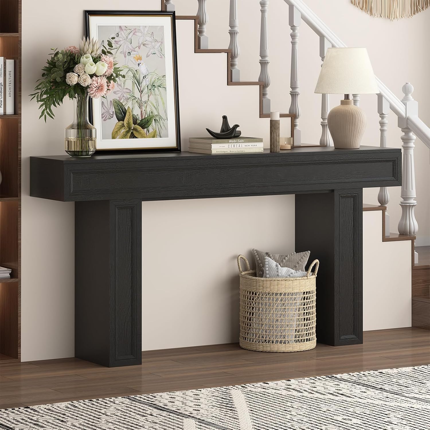 Rresyet 63 Inch Long Console Table, Sofa Table Behind Sofa, Wooden Entryway Table, Farmhouse Entryway Table for Entry, Hallway, Living Room (Black)