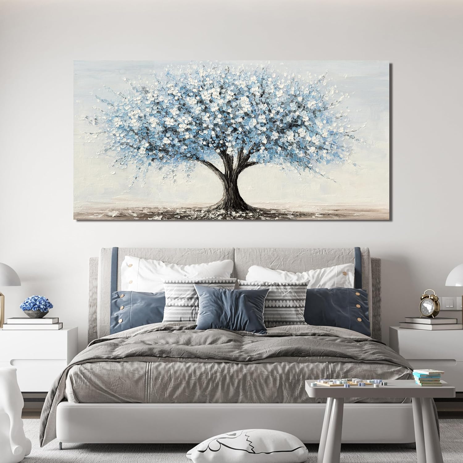 Large Canvas Wall Art Decor Large Tree of Life Wall Art Canvas Art Wall Decor Wall Art Pictures for Living Room Vintage White Blue Wall Art Prints Artwork for Walls Bedroom Office Decor 29" X 58"