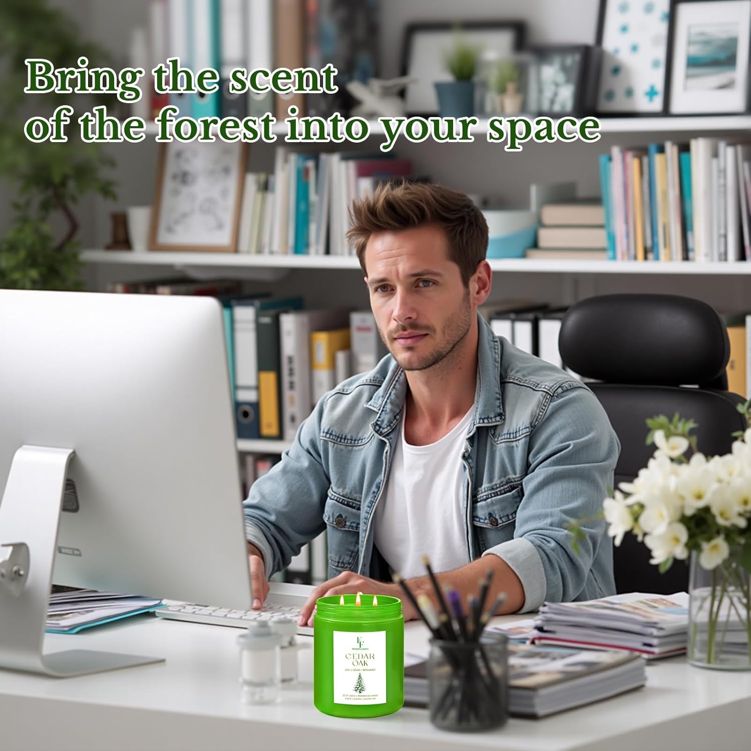- Indulge in Nature's Aroma: Our cedar oak large candle features a captivating blend of cedar, oak, and bergamot, offers a warm, woody fragrance that creates an inviting atmosphere in your home, perfect for relaxation and stress relief