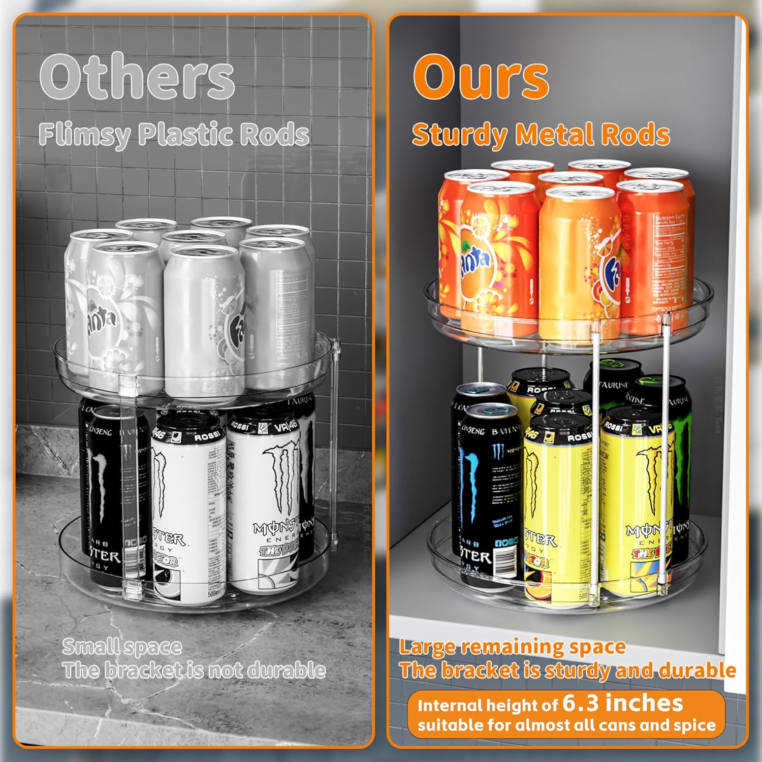- 【Customizable Stacking Design】Customize your space by stacking these units into a 3-tier clear Lazy Susan organizer when you buy 2 Sets — well-suited for kitchen cabinet organizer spices or seasoning, cans, beverages, medicine, bathroom counter organizer makeup, perfume, and more
