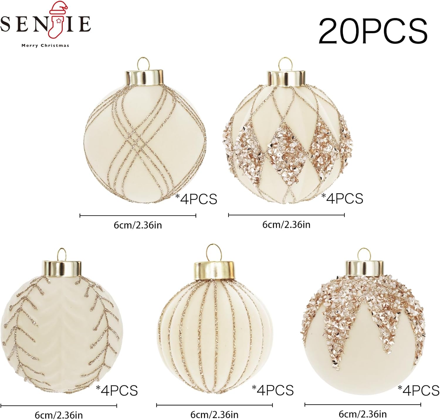 20PCS Velvet Ornaments for Christmas Tree, 2.36INCH Glitter Flocked Christmas Ornaments Decorations Balls Set Decor