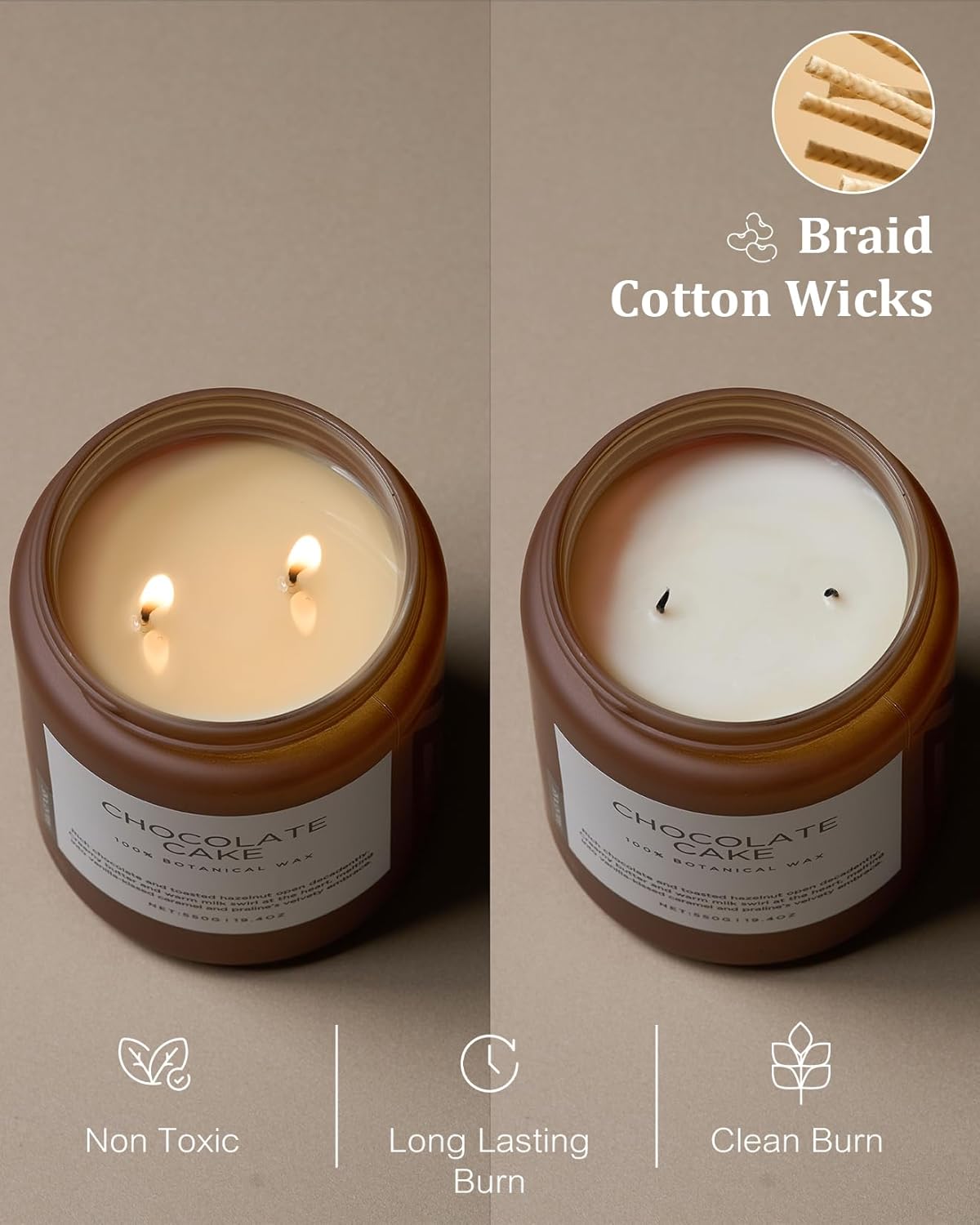 M&SENSE Chocolate Layer Cake Scent Candles, Large 19.4oz Natural Soy Wax 110 Hours Burn Time Clean Non Toxic Scented Classic 2 Wicks Candle for Bedroom Living Room Office