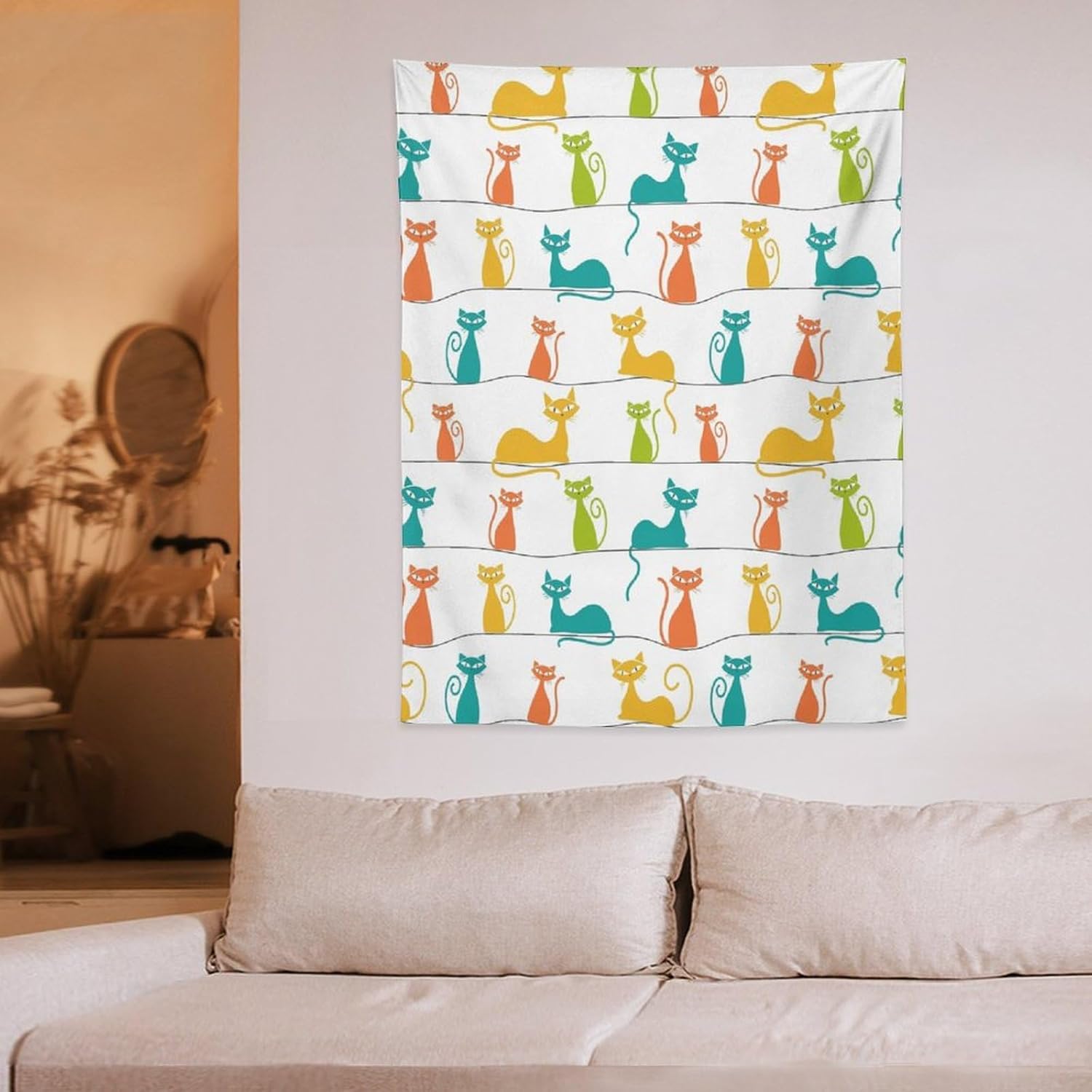 ICMOLYYENLO Boho Medieval Cat Tapestry, Abstract Atomic Starburst Geometric Aesthetic Art Wall Hanging For Bedroom Living Room Dormitory 50x60 Inches