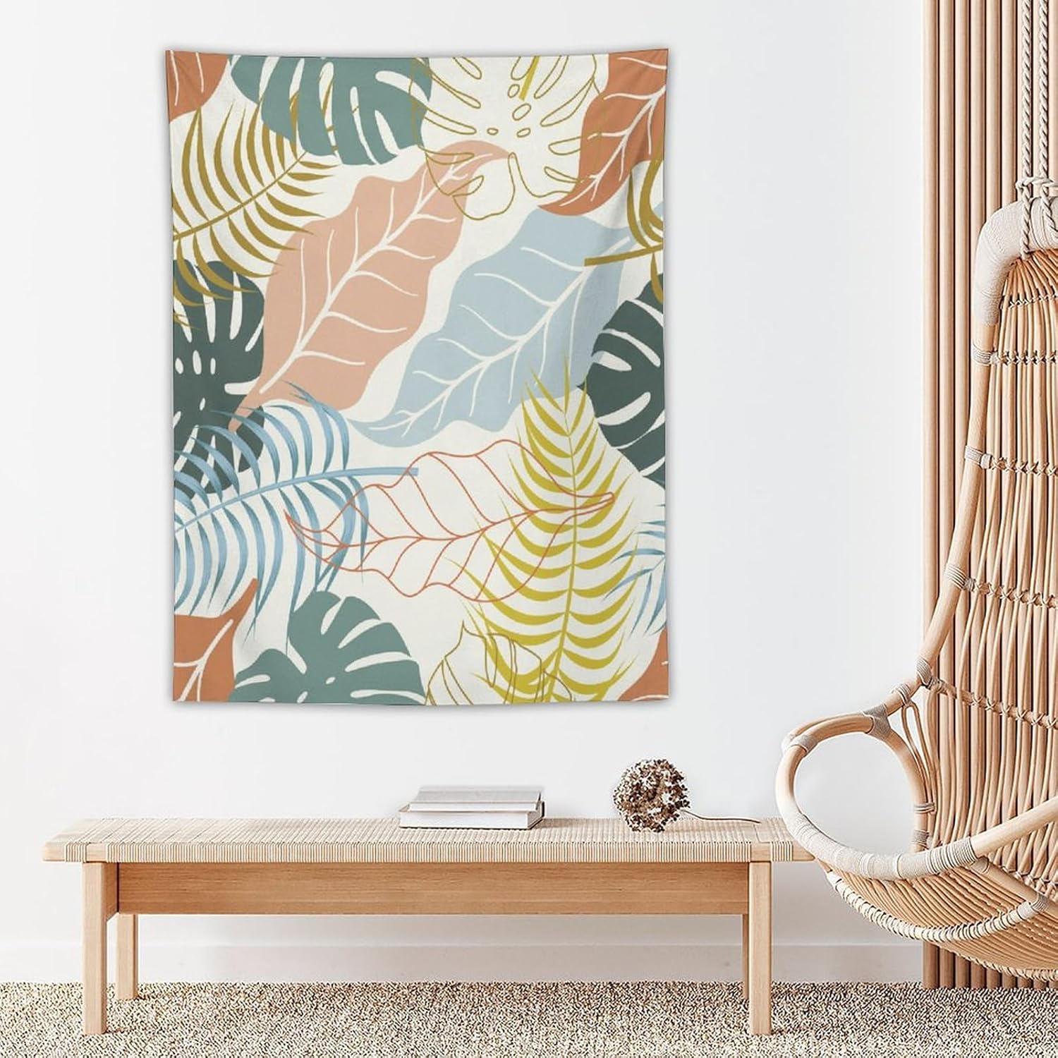 ICMOLYYENLO Boho Green Leaves Tapestry, Mid Century Abstract Tropical Palm Leaves Modern Minimalist Geometric Wall Hanging, Neutral Home Decor Art for Living Room Bedroom Dorm 30x40 Inch