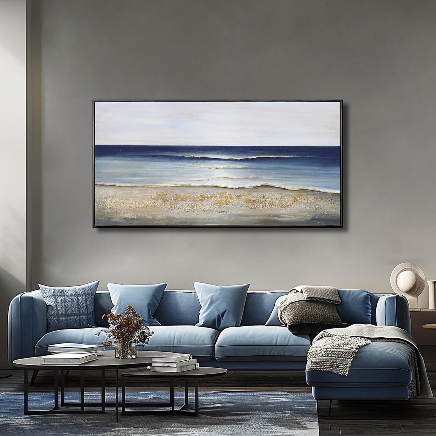 Yuaxker Ocean Wall Art Large Framed Wall Decor Blue and Gold Artwork Room Decor Aesthetic for Living Room Bedroom Dining Room Office Home Decor 30x60 Inch